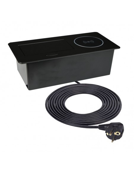 Konnektor Zeobox 1+2 USB + induktív töltő fekete