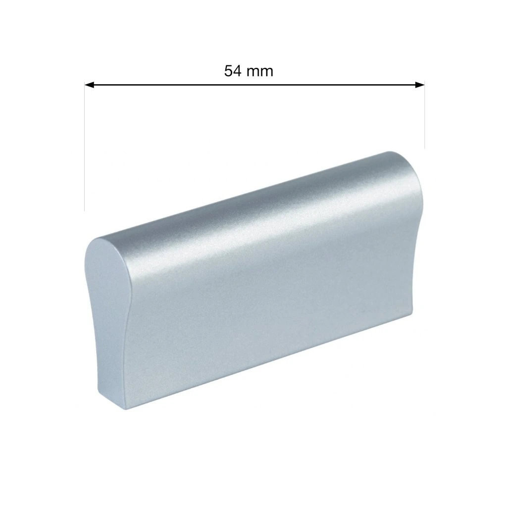 Soria bútorfogantyú alumínium és matt króm felülettel, 32 mm-es tengelytávolsággal. A fogantyú hossza 54 mm, szélessége 12 mm és magassága 24 mm. Rögzítőelemek mellékelve.