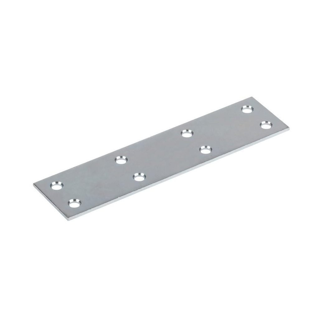 120 mm hosszú és 30 mm széles horganyzott összekötő lemez süllyesztett rögzítőfuratokkal.