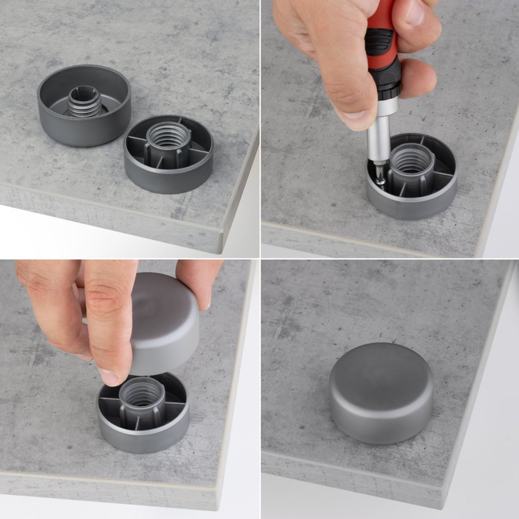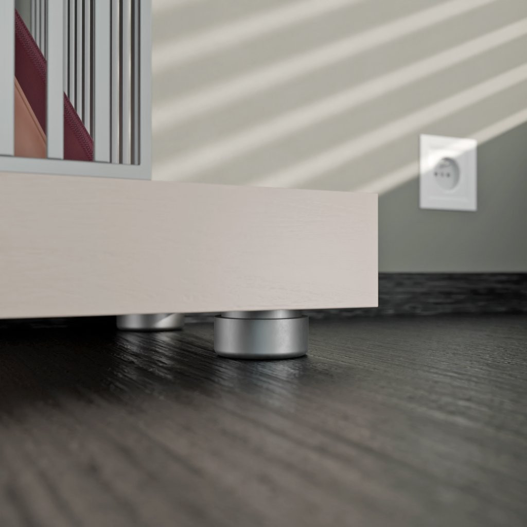 Műanyag csúszka ezüst kivitelben, 53,5 mm átmérővel és 23,5 mm magassággal, ragasztásra .