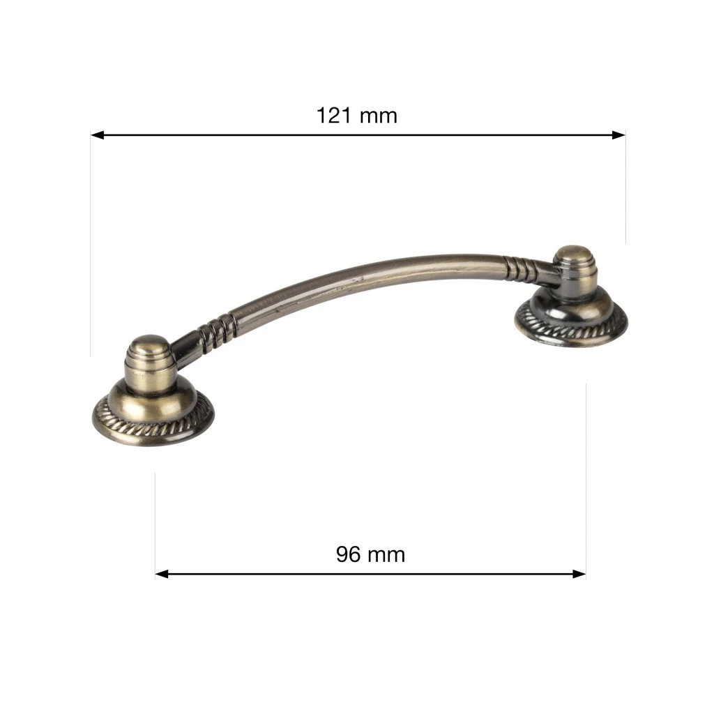 Sapri rusztikus stílusú bútorfogantyú 96 mm-es tengelytávolsággal és bronz bevonattal. Fogantyúhossz 121 mm, szélesség 25 mm és magasság 23 mm. Rögzítőcsavarokkal együtt.