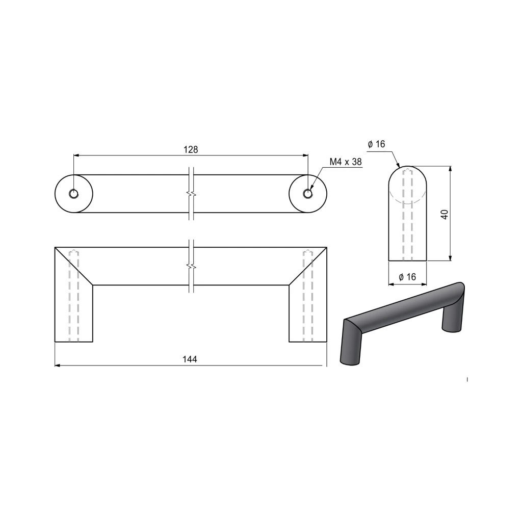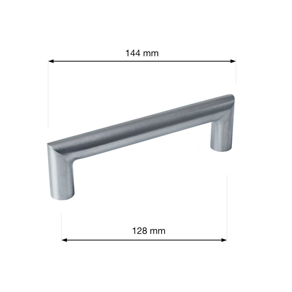 Modern rozsdamentes acél Vazia fogantyú 128 mm-es tengelytávolsággal. A fogantyú hossza 144 mm, szélessége 16 mm és magassága 40 mm. Rögzítőcsavarokkal együtt.