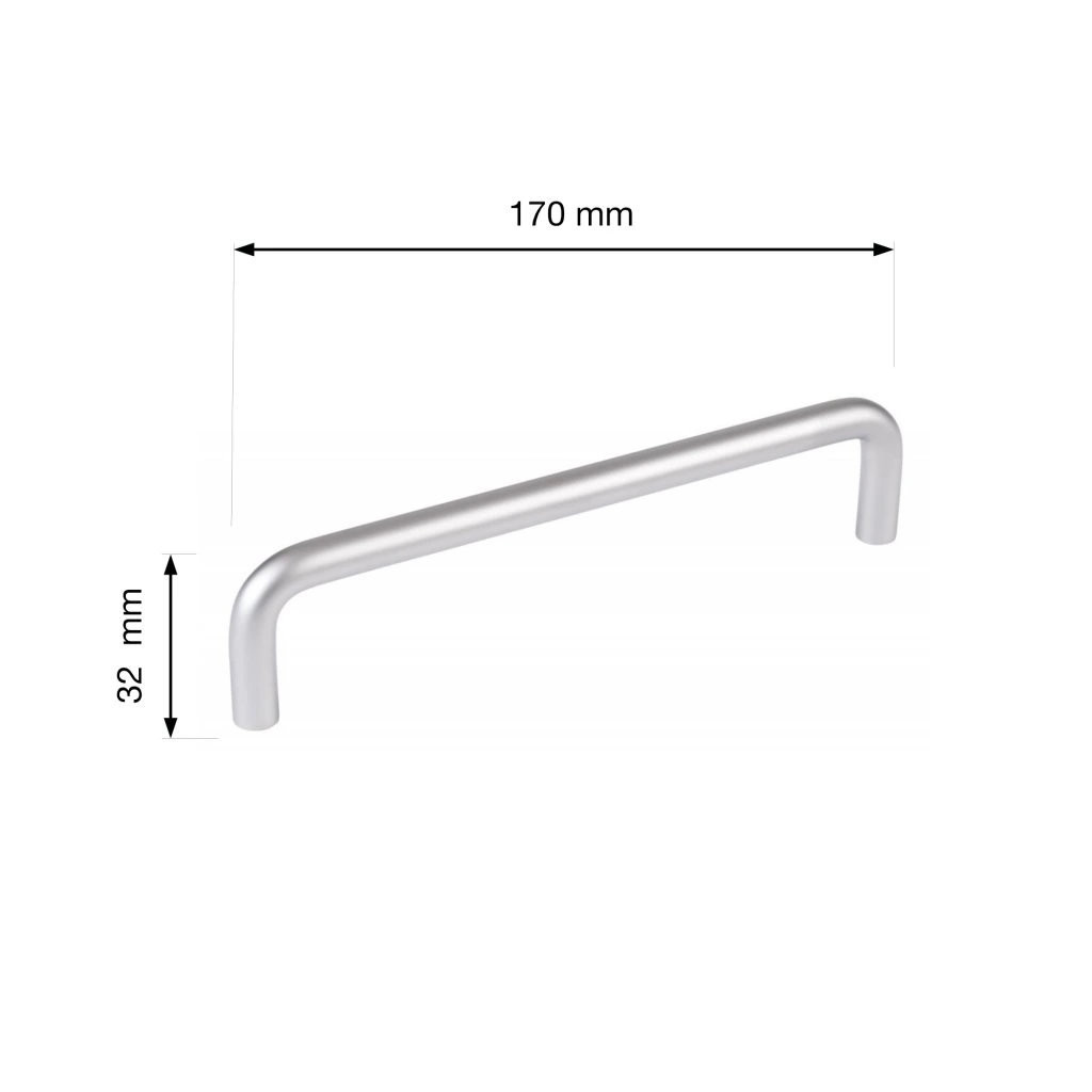 Modern Gissi bútorfogantyú 160 mm-es tengelytávolsággal és matt króm felülettel. Fogantyúhossz 170 mm, szélesség 10 mm és magasság 32 mm. Rögzítőcsavarokkal együtt.