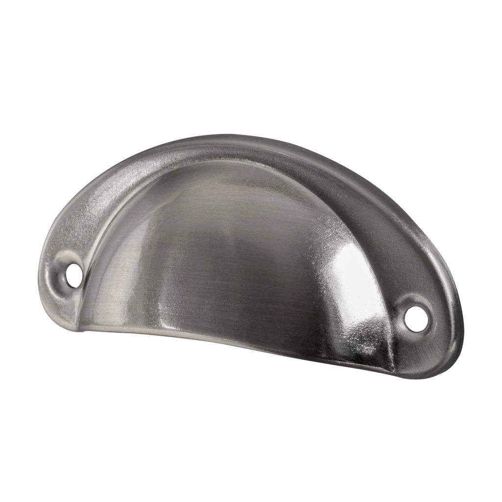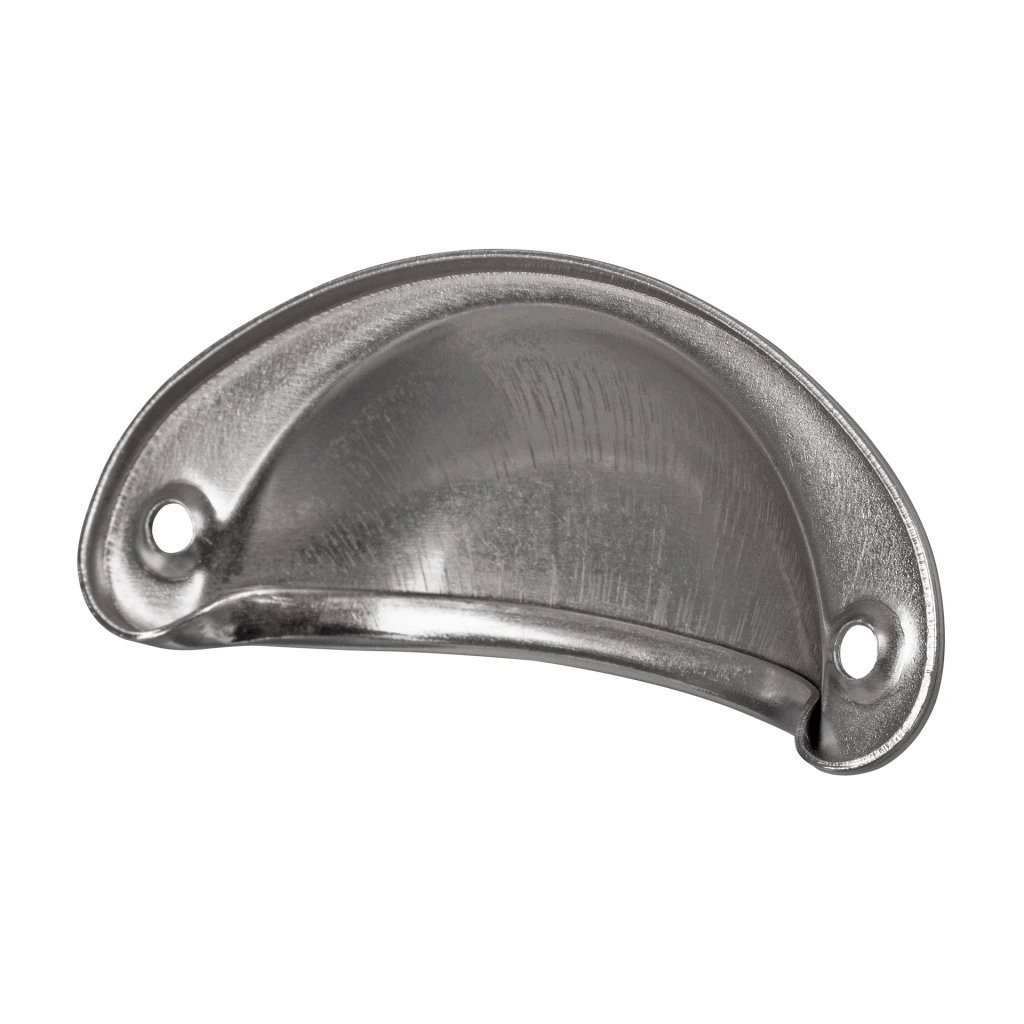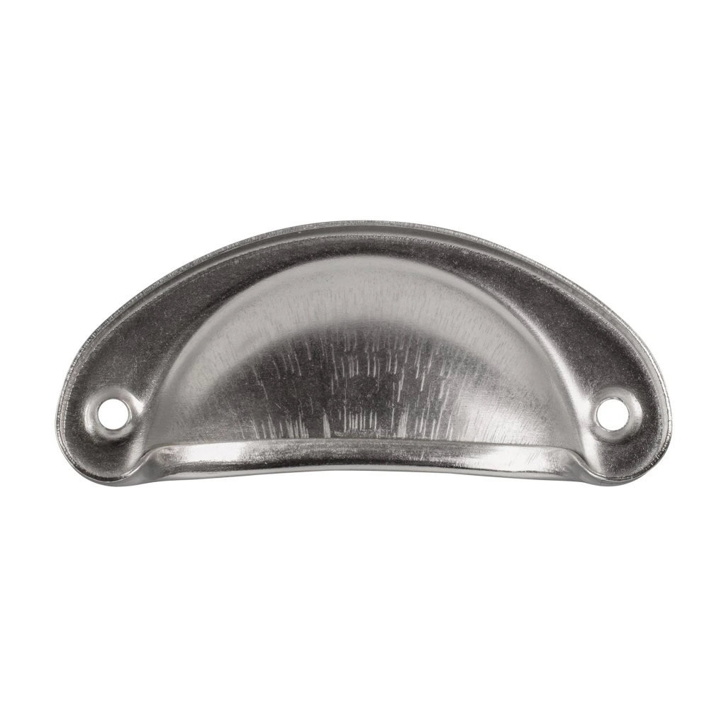 Modern Skive bútorkilincs rusztikus stílusban, 66 mm-es rasztermérettel és matt nikkel bevonattal. A fogantyú hossza 82 mm, szélessége 33 mm és magassága 18 mm.