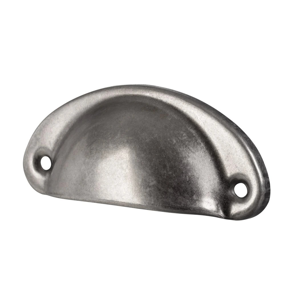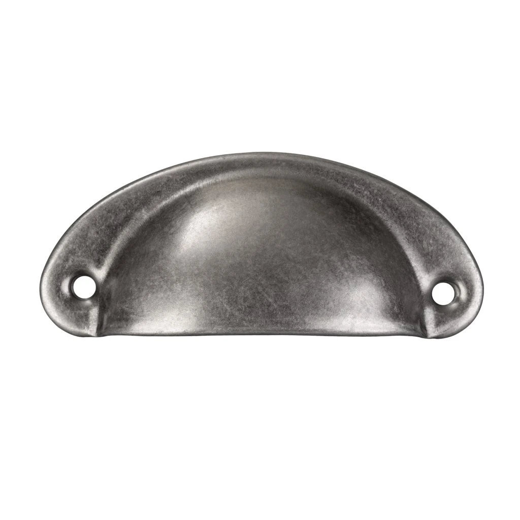 Modern Skive bútorfogantyú rusztikus stílusban, 66 mm-es rasztermérettel és antik cink bevonattal. A fogantyú hossza 82 mm, szélessége 33 mm és magassága 18 mm. Rögzítőcsavarokkal együtt.