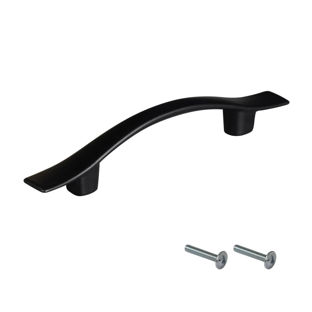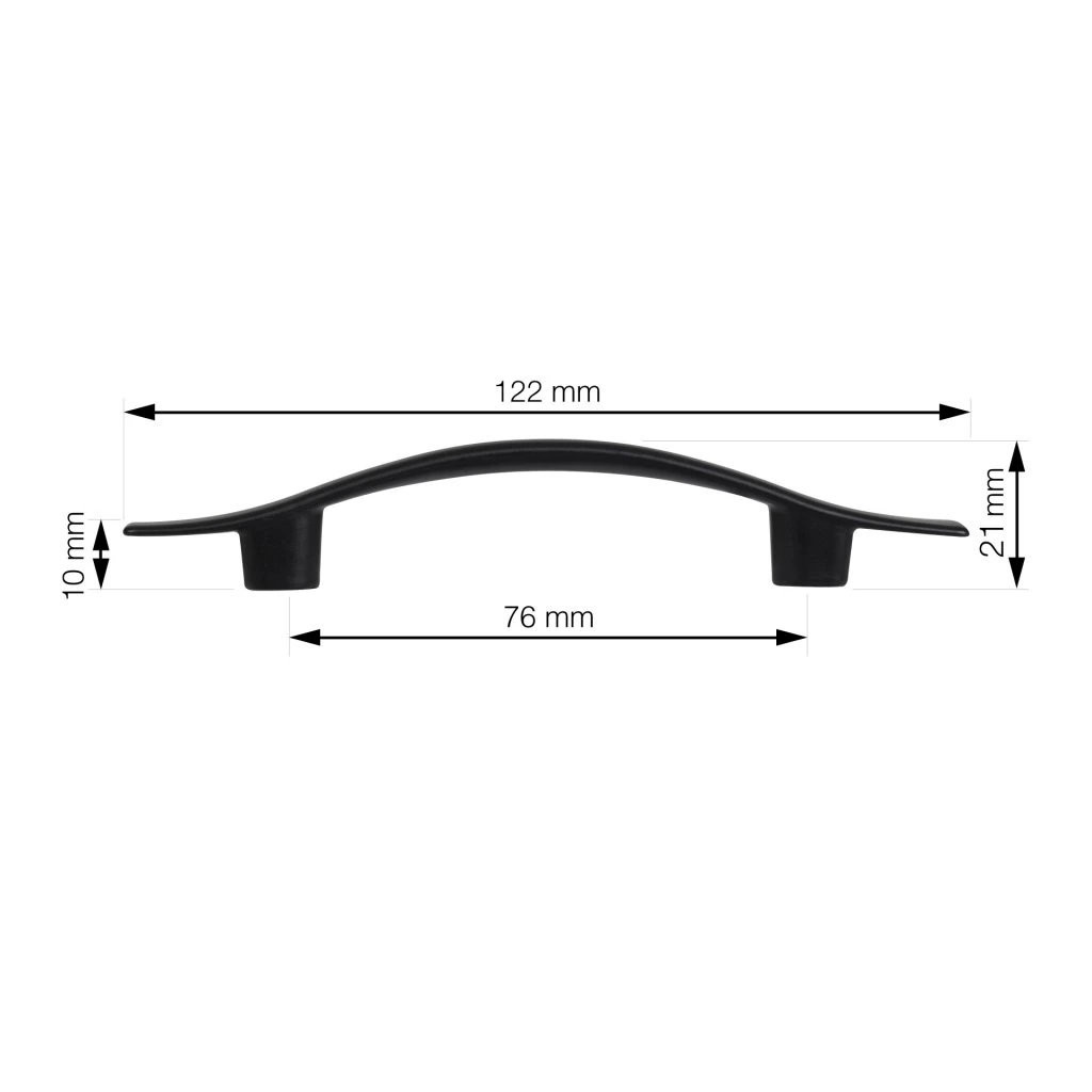 Modern Wausa bútorfogantyú 76 mm-es tengelytávolsággal és népszerű matt fekete felülettel. Fogantyúhossz 122 mm, mélysége 13 mm és magassága 21 mm. Rögzítőcsavarokkal együtt.