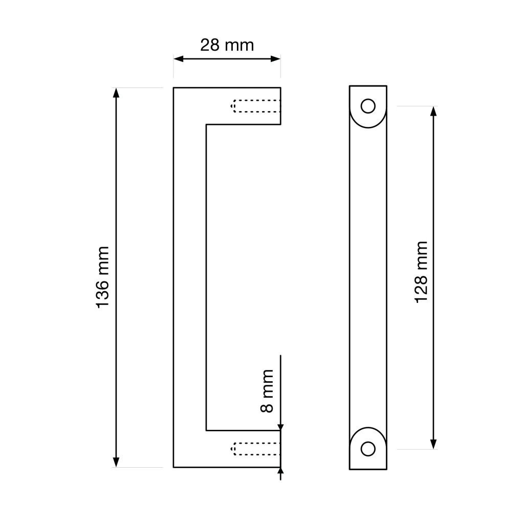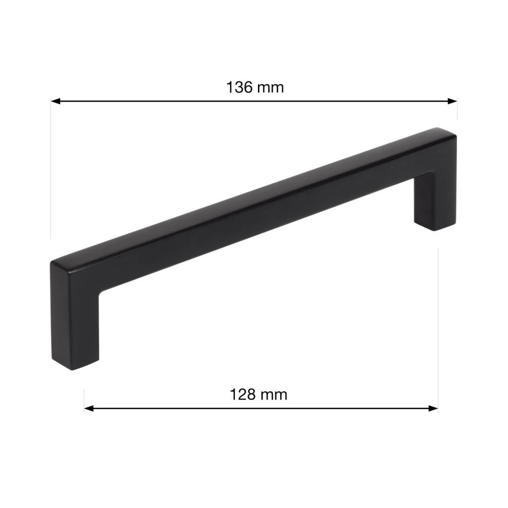 Modern Prisma bútorfogantyú 128 mm-es tengelytávolsággal, matt fekete színben. Fogantyúhossz 136 mm, szélesség 8 mm és magasság 28 mm. Rögzítőcsavarokkal együtt.