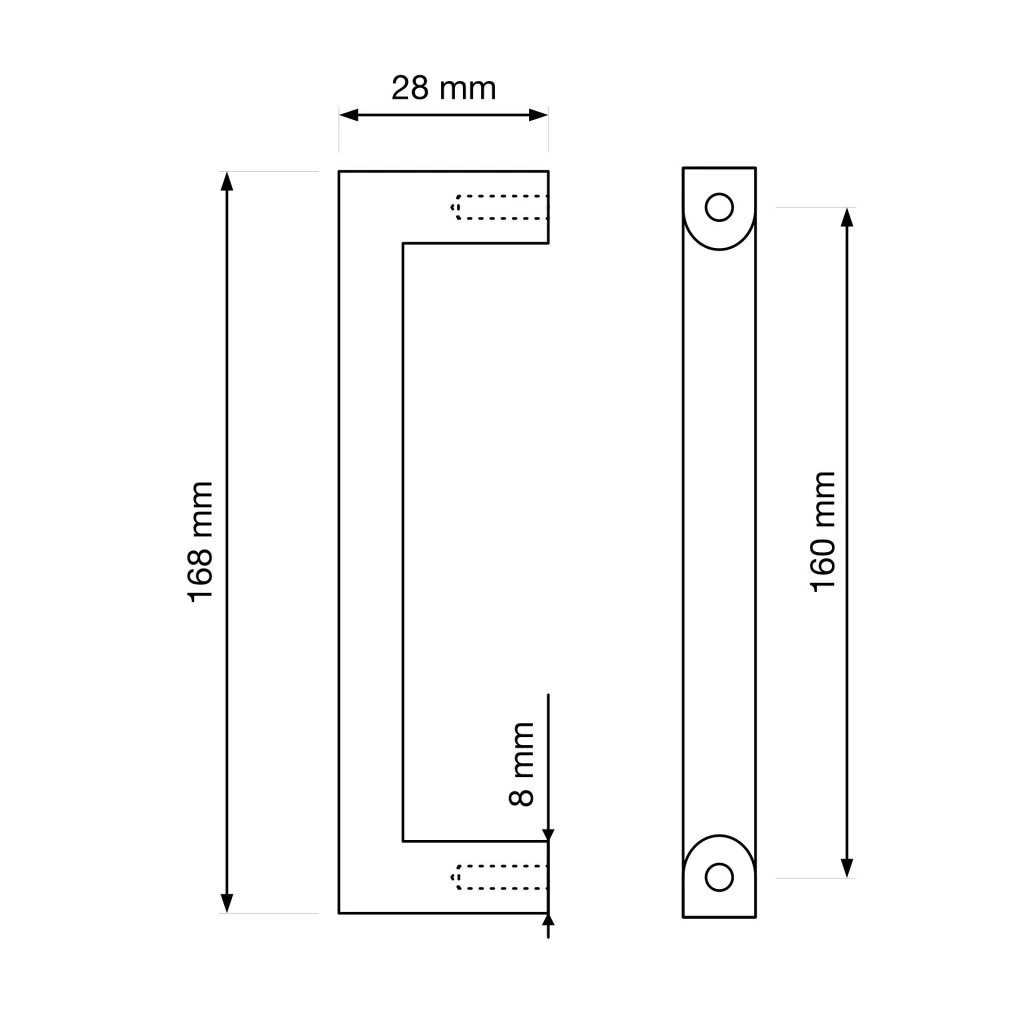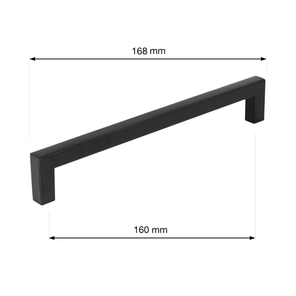 Modern Prisma bútorfogantyú 160 mm-es tengelytávolsággal, matt fekete színben. Fogantyúhossz 168 mm, szélesség 8 mm és magasság 28 mm. Rögzítőcsavarokkal együtt.