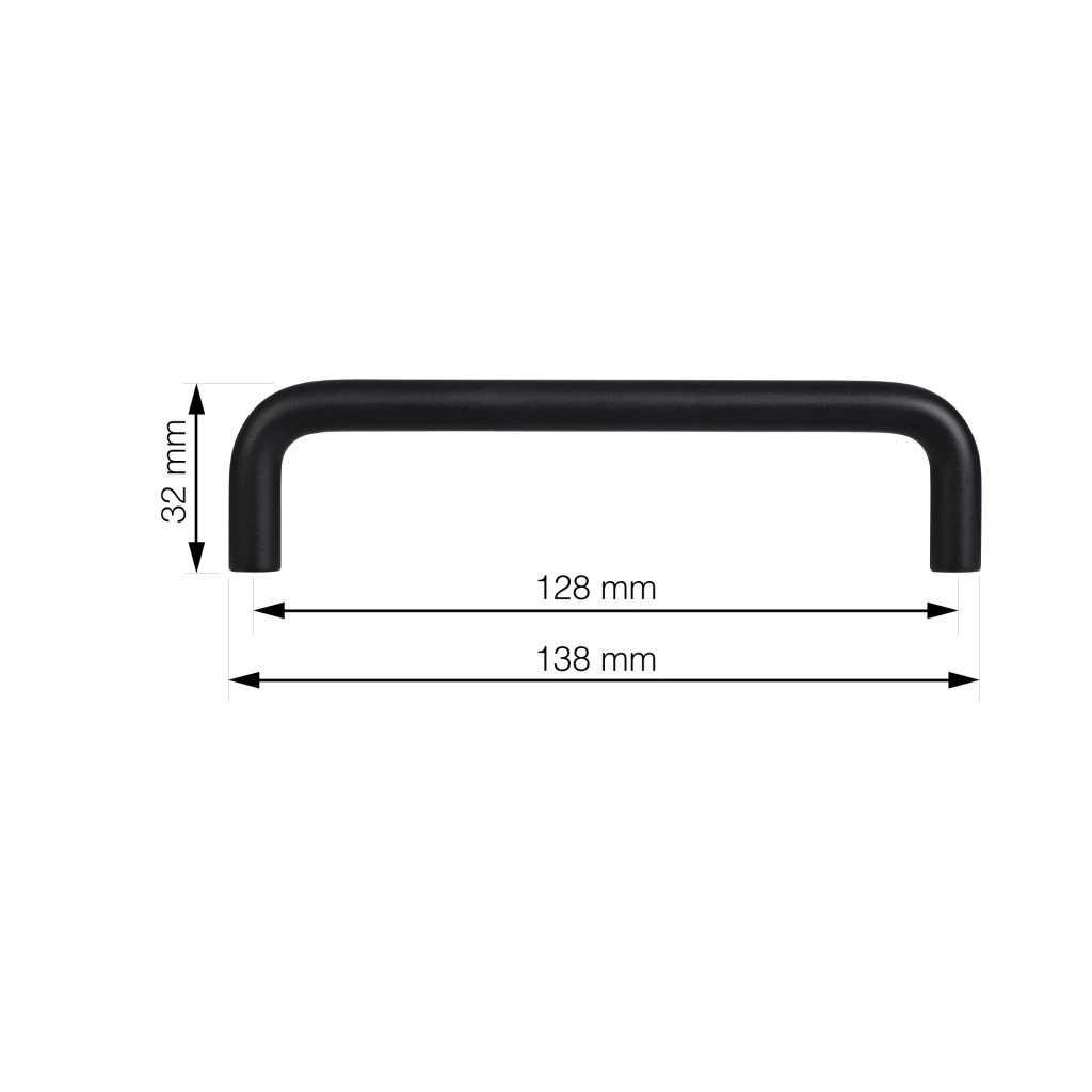 Modern Gissi bútorfogantyú 128 mm-es tengelytávolsággal és népszerű matt fekete felülettel. Fogantyúhossz 138 mm, átmérő 9,5 mm és magasság 32 mm. Rögzítőcsavarokkal együtt.