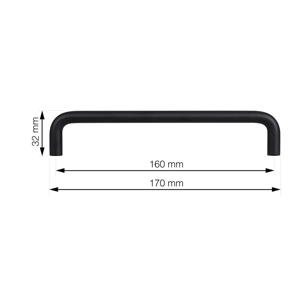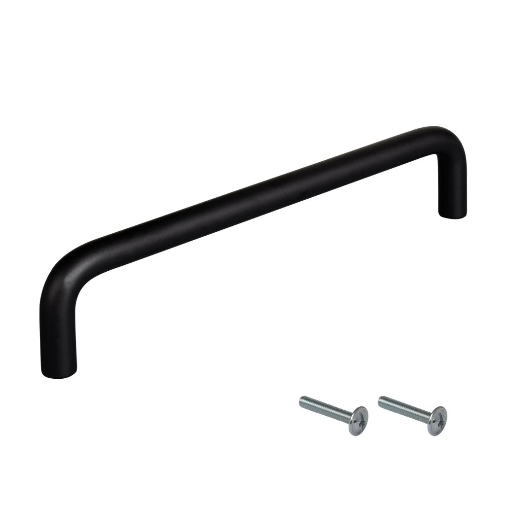 Modern Gissi bútorfogantyú 160 mm-es tengelytávolsággal és népszerű matt fekete felülettel. Fogantyúhossz 170 mm, átmérő 10 mm és magasság 32 mm. Rögzítőcsavarokkal együtt.