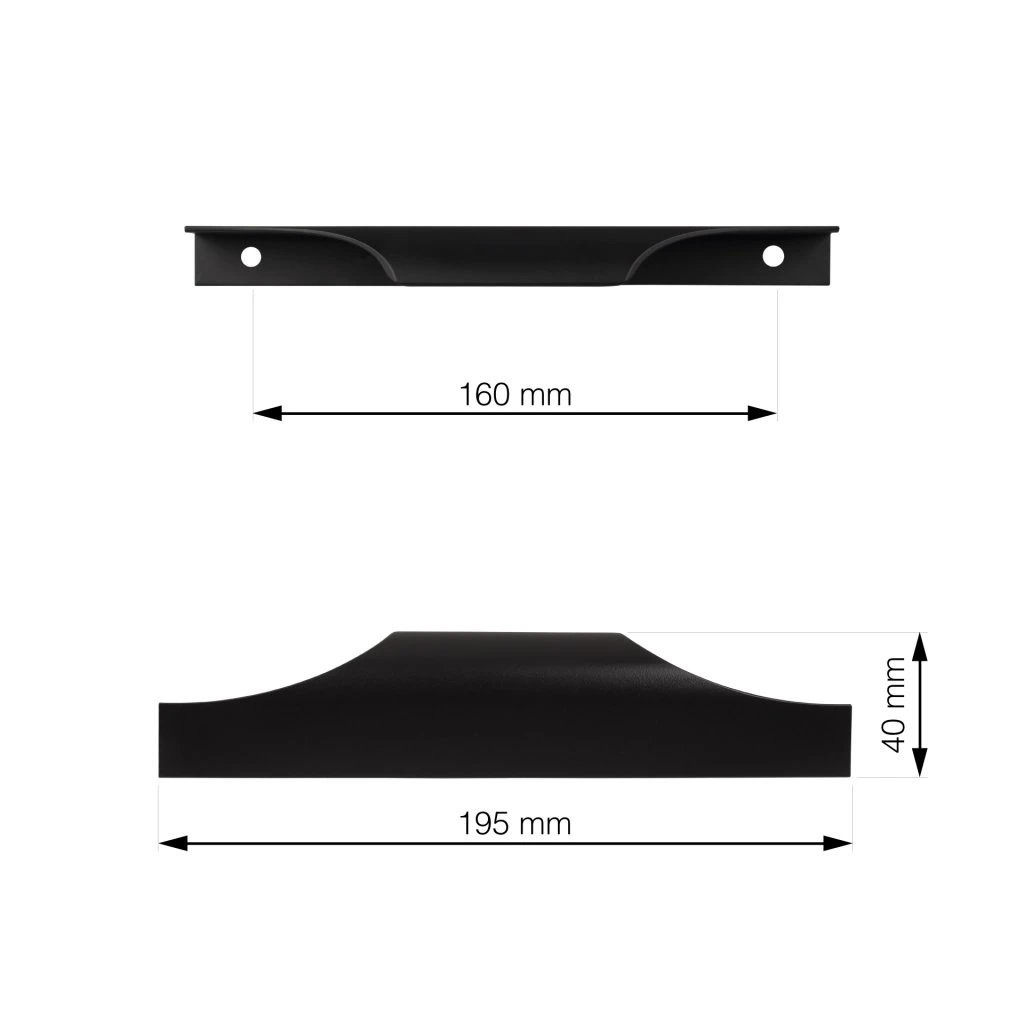 Modern Todi bútorfogantyú 160 mm-es rasztermérettel, matt fekete színben, 195 mm hosszú és 40 mm széles. A fogantyú a fiók belsejéből szerelhető - a szerelési anyagok a csomag részét képezik. Ez a rögzítési mód nagyon népszerű a feltűnésmentessége miatt - jól illik a világos fa dekorációkhoz.