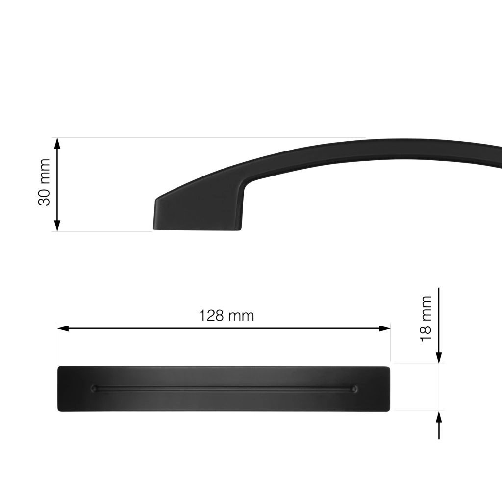 Modern műanyag Laxa nyél, 96 mm-es rasztermérettel, matt fekete színben. Nyélhossz 128 mm, szélesség 18 mm és magasság 30 mm. Rögzítőcsavarokkal együtt.
