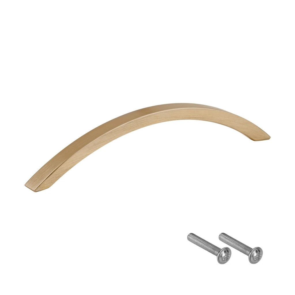 Modern Bari bútor fogantyú 160 mm-es tengelytávolsággal és szálcsiszolt sárgaréz felülettel. A fogantyú hossza 182 mm, magassága 34 mm. Rögzítőcsavarokkal együtt.