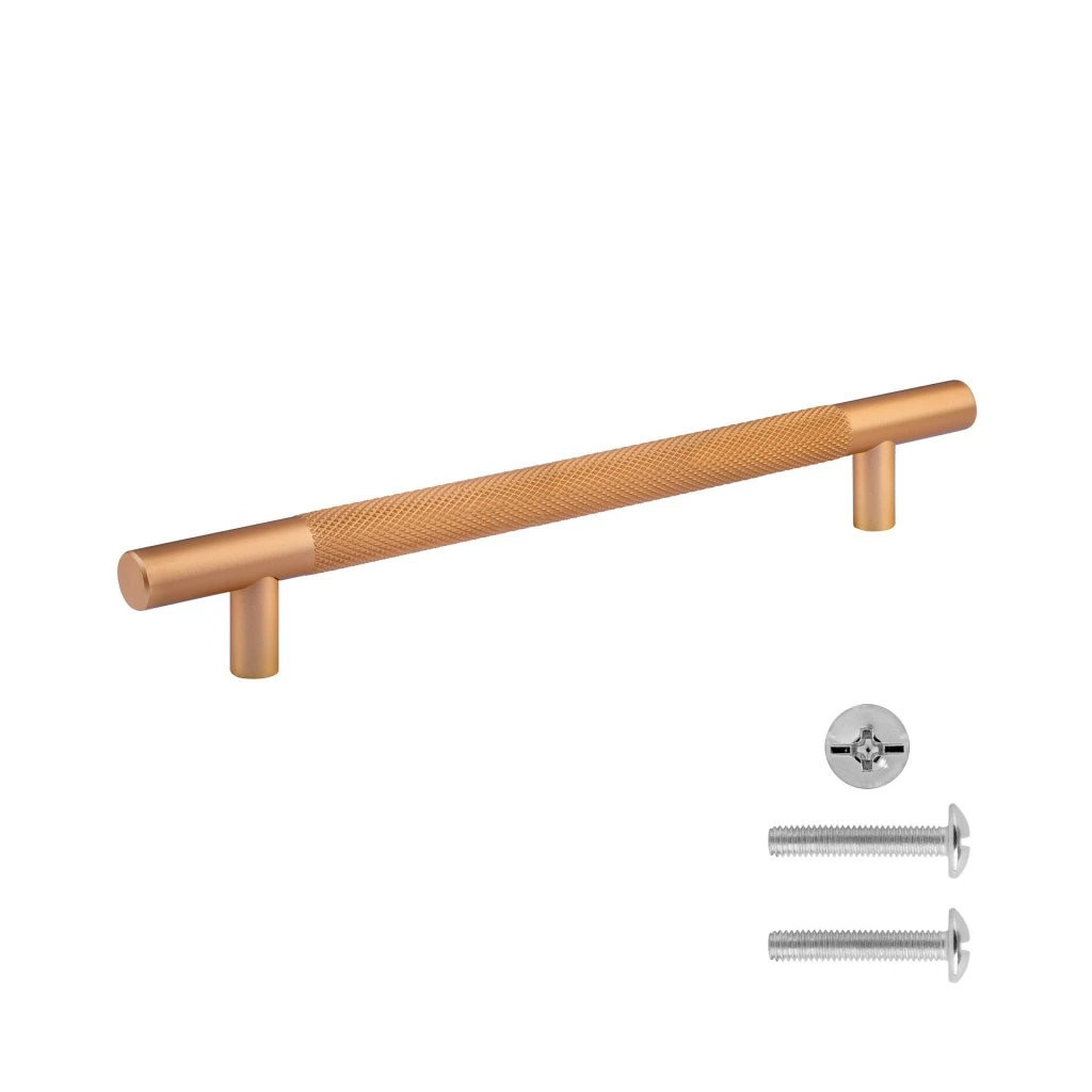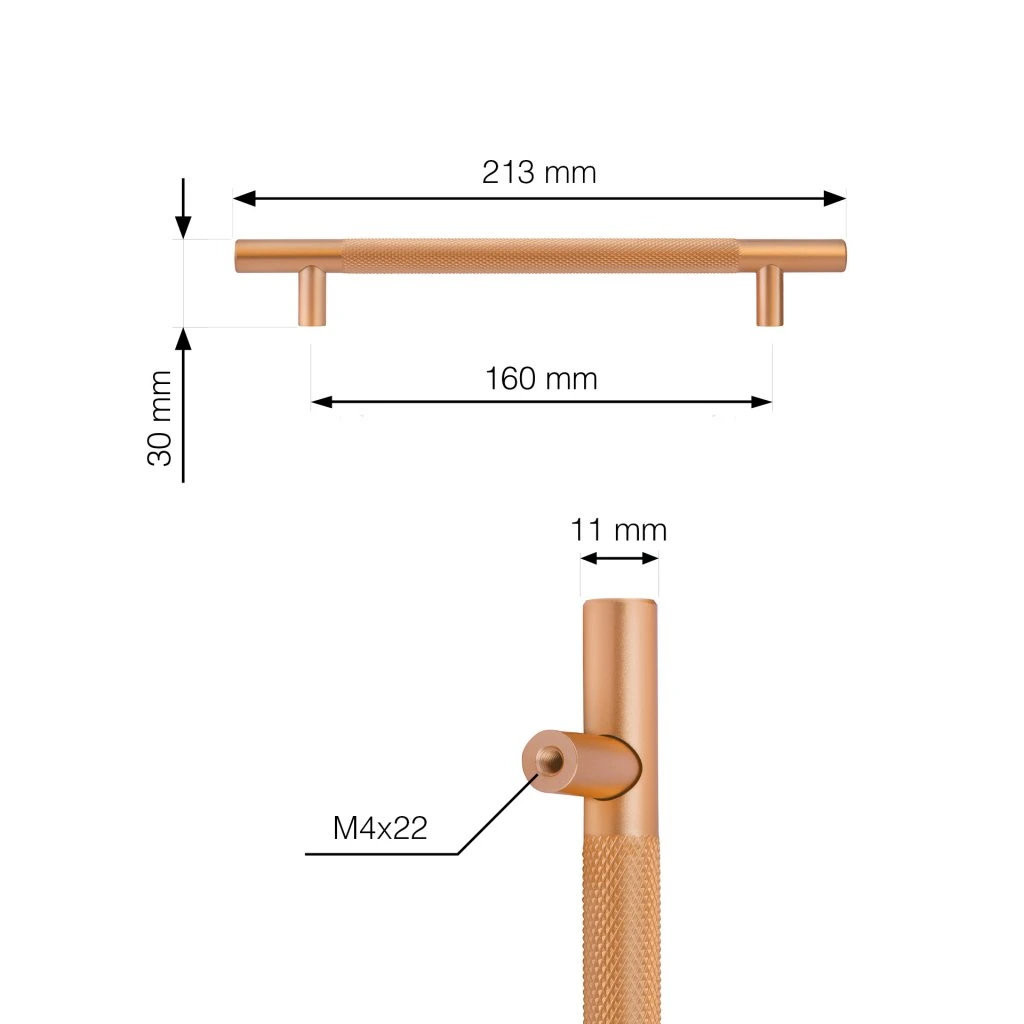 Modern Toledo bútorfogantyú 160 mm-es tengelytávolsággal és matt arany felülettel. A fogantyú hossza 213 mm, magassága 30 mm. Rögzítőcsavarokkal együtt.