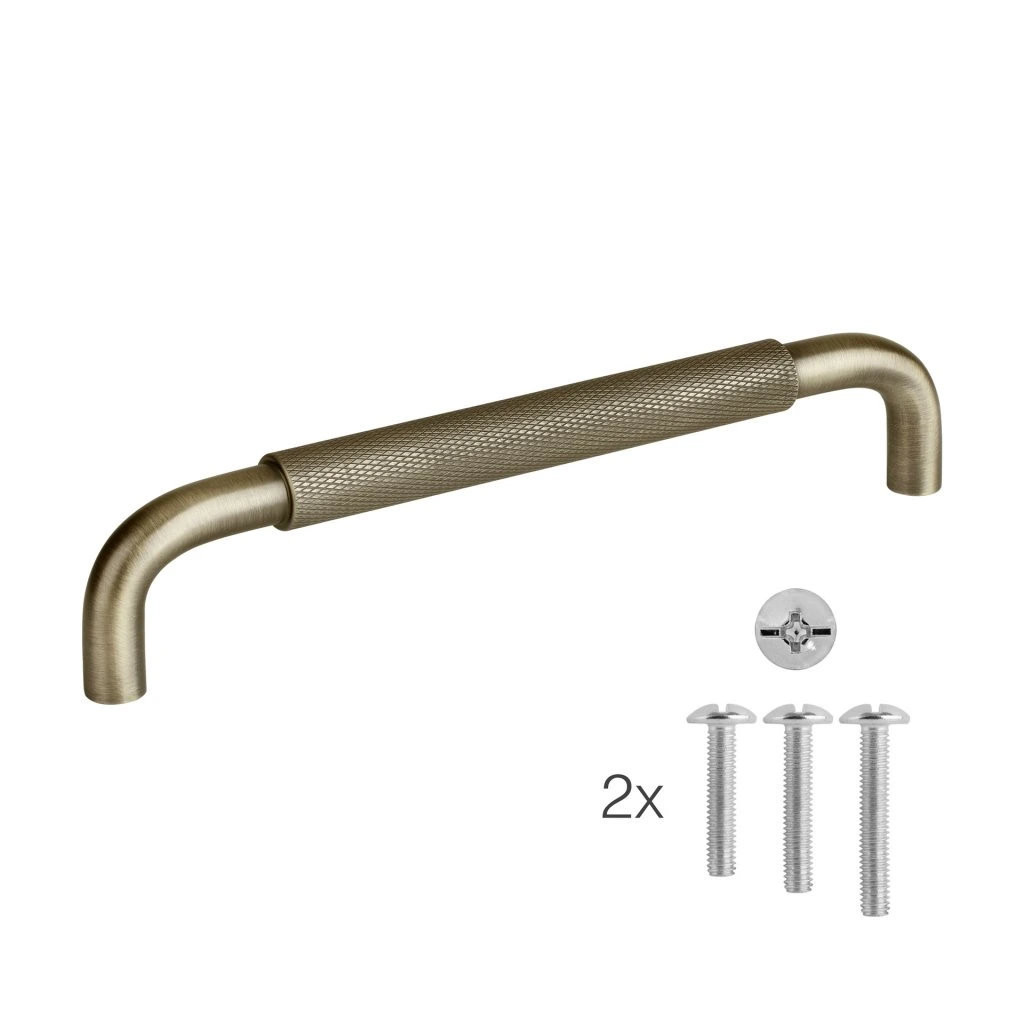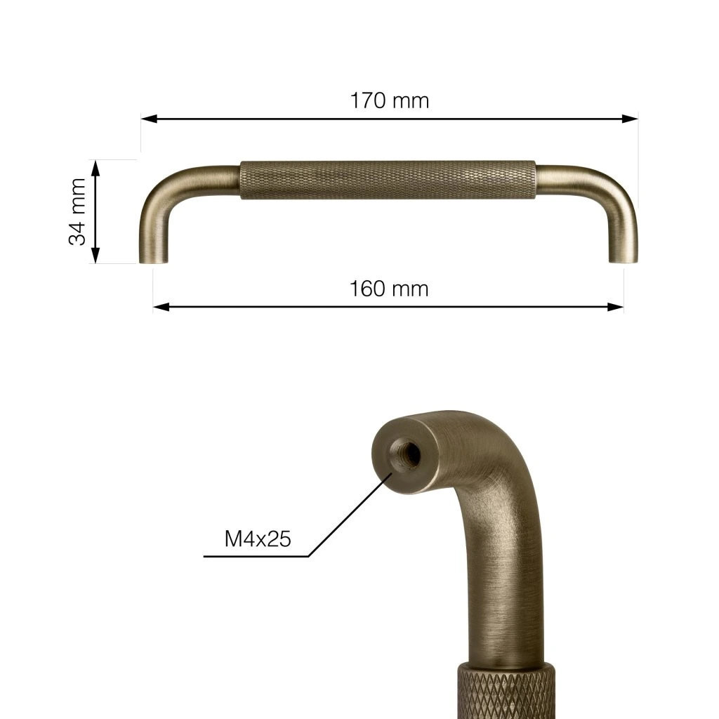 Modern Grave bútor fogantyú 160 mm-es tengelytávolsággal és antik bronz bevonattal. A fogantyú hossza 170 mm, magassága 34 mm. Rögzítőcsavarokkal együtt.