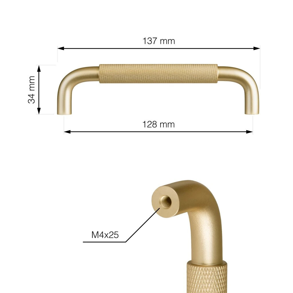 Bútor fogantyú Grave tengelytávolság 128 mm alumínium szálcsiszolt sárgaréz