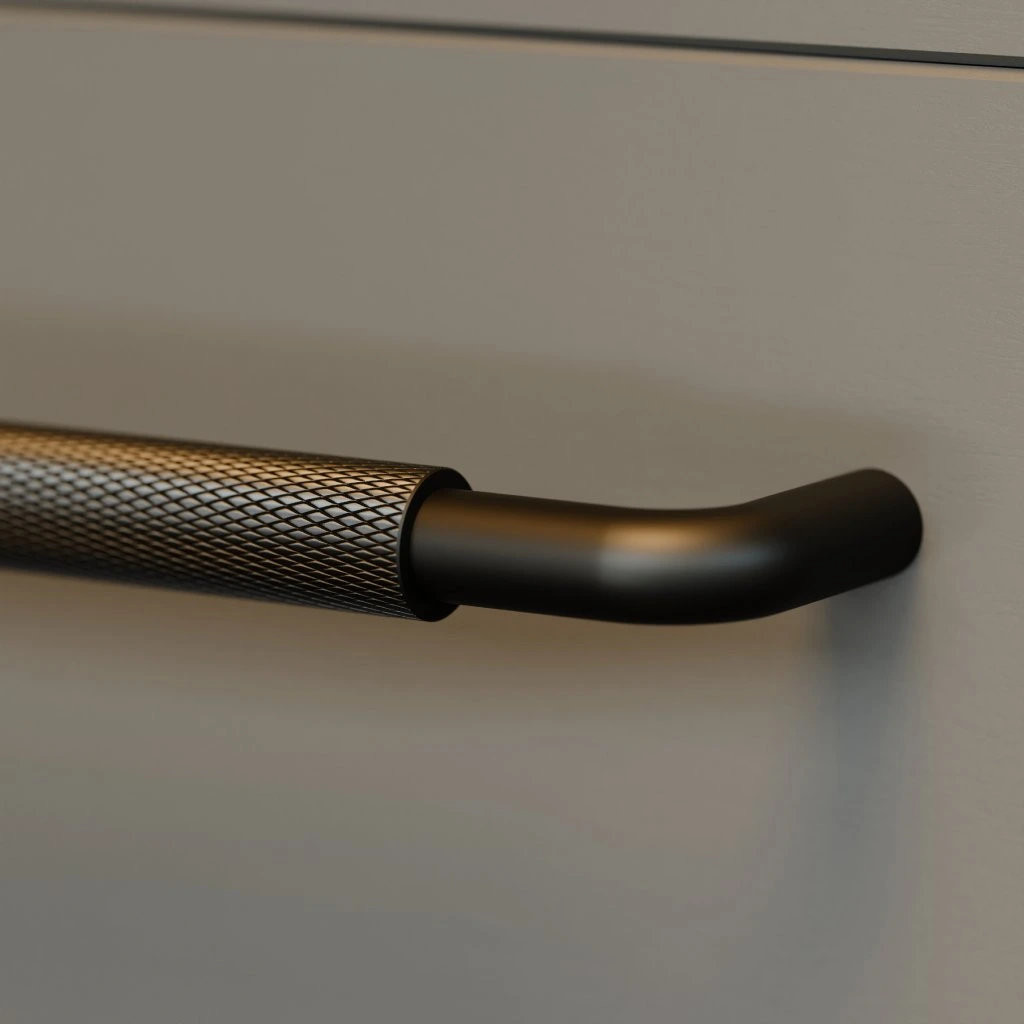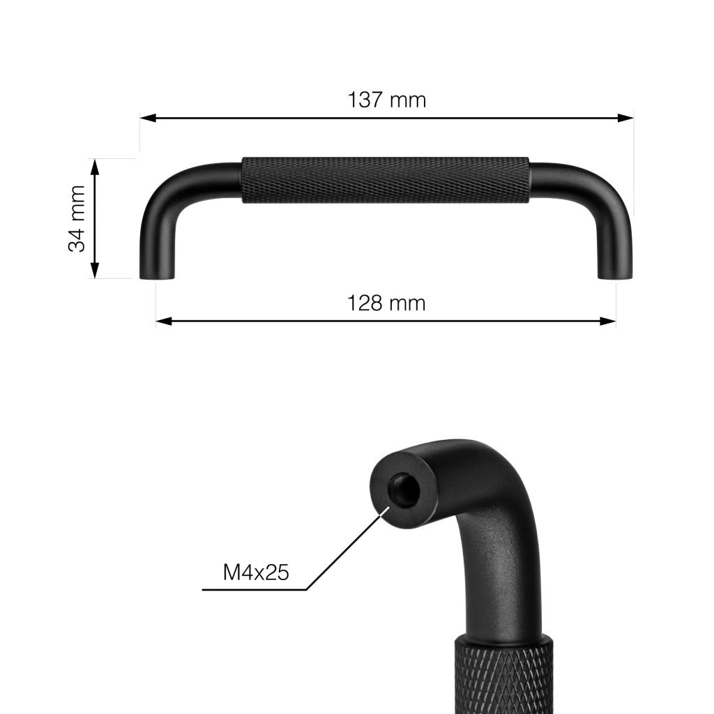 Modern Grave bútorfogantyú 128 mm-es tengelytávolsággal és népszerű matt fekete felülettel. Fogantyúhossz 137 mm és magasság 34 mm. Rögzítőcsavarokkal együtt.