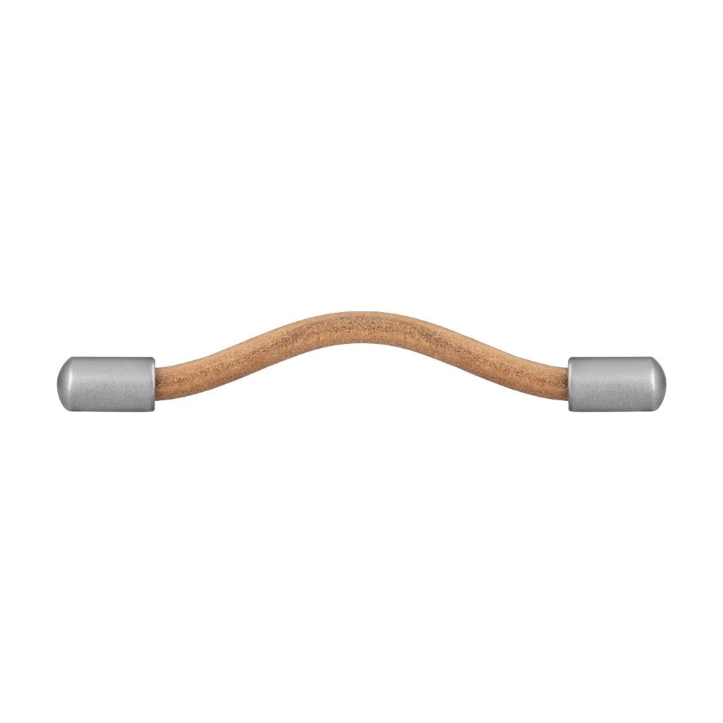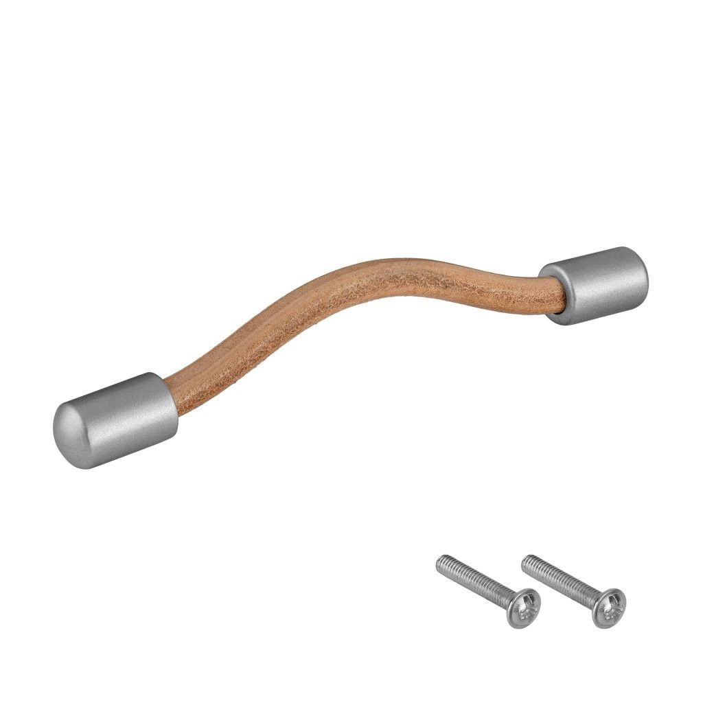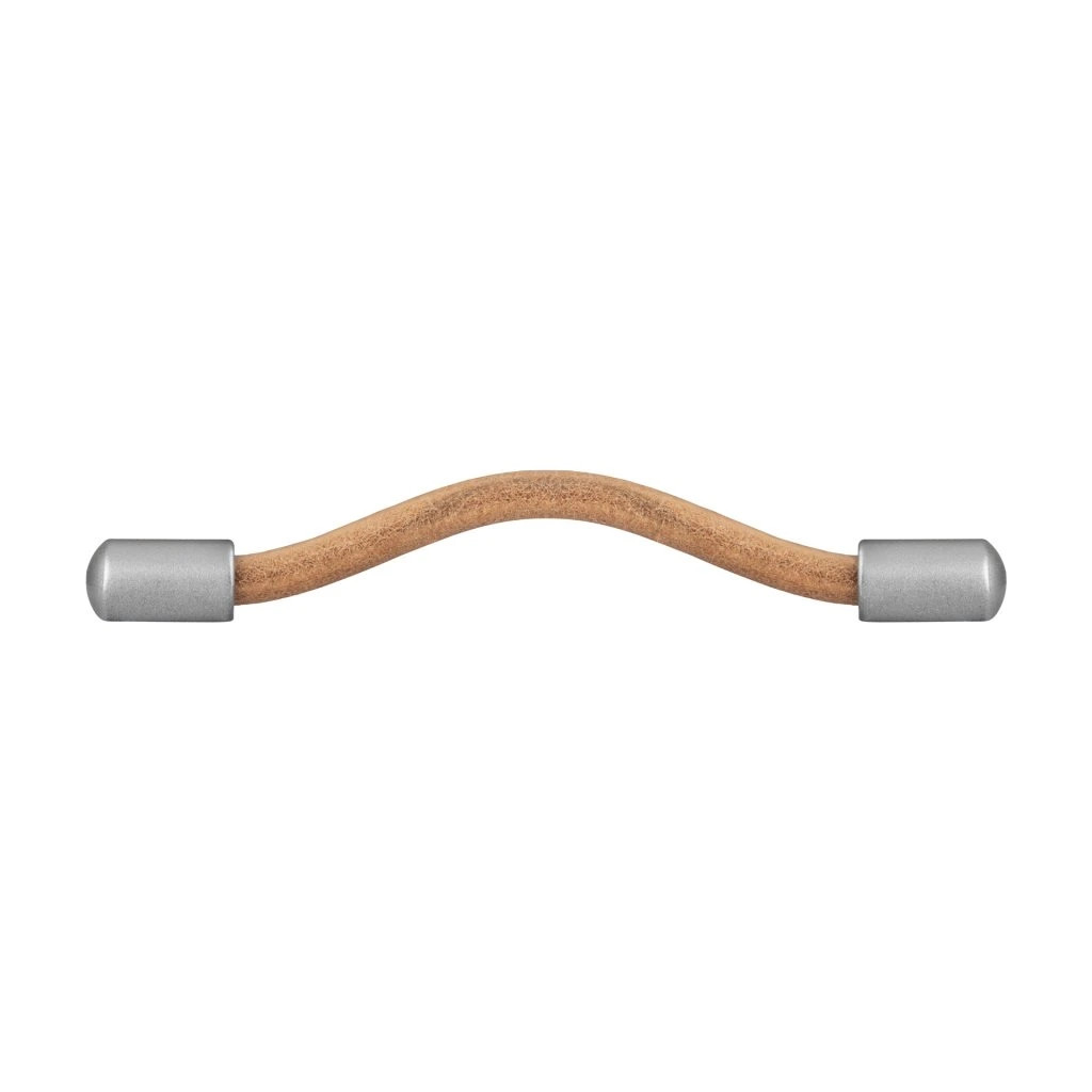 Modern Izola bútorfogantyú 128 mm-es tengelytávolsággal, bőr/matt króm felülettel. A fogantyú hossza 145 mm, magassága 25 mm. Rögzítőcsavarral együtt.