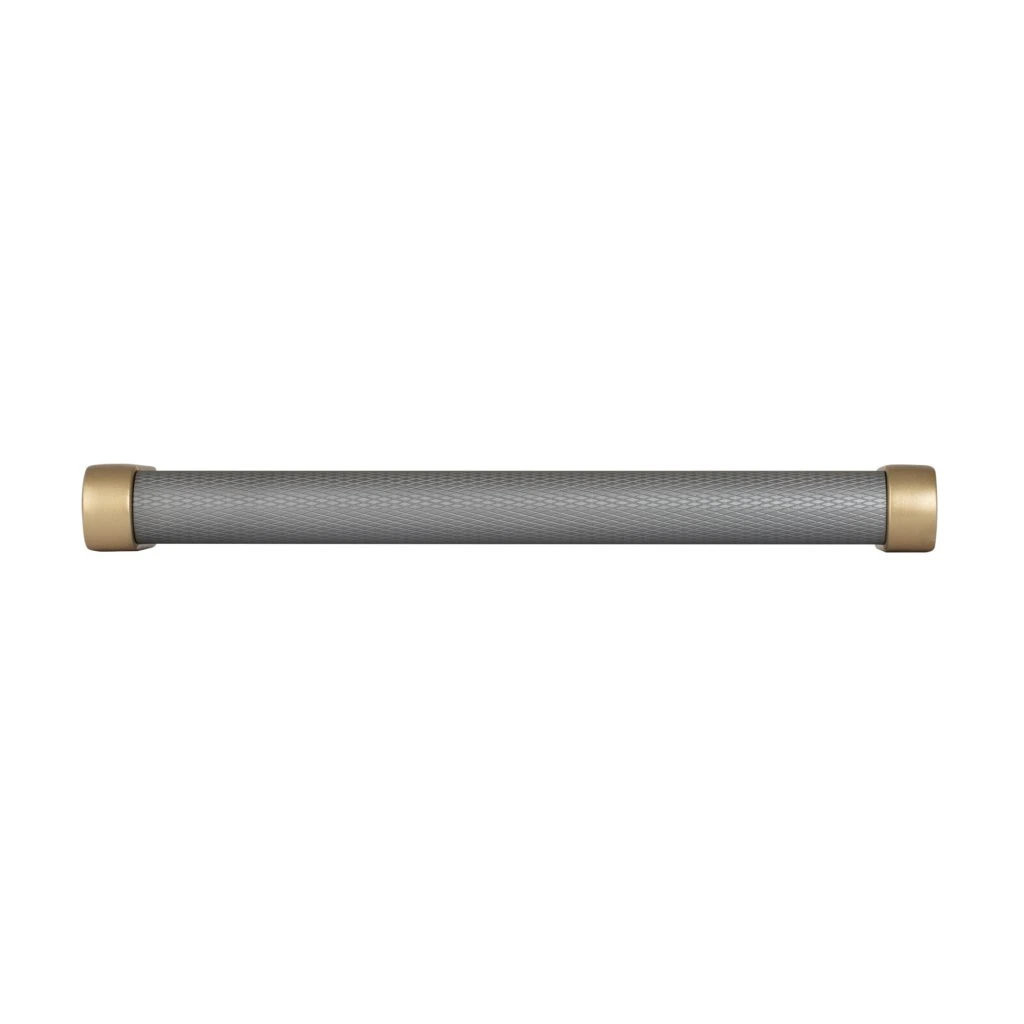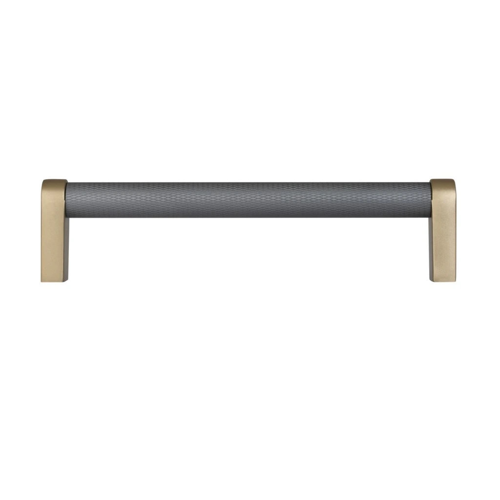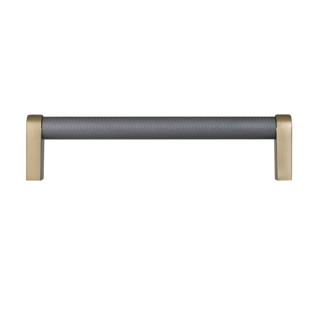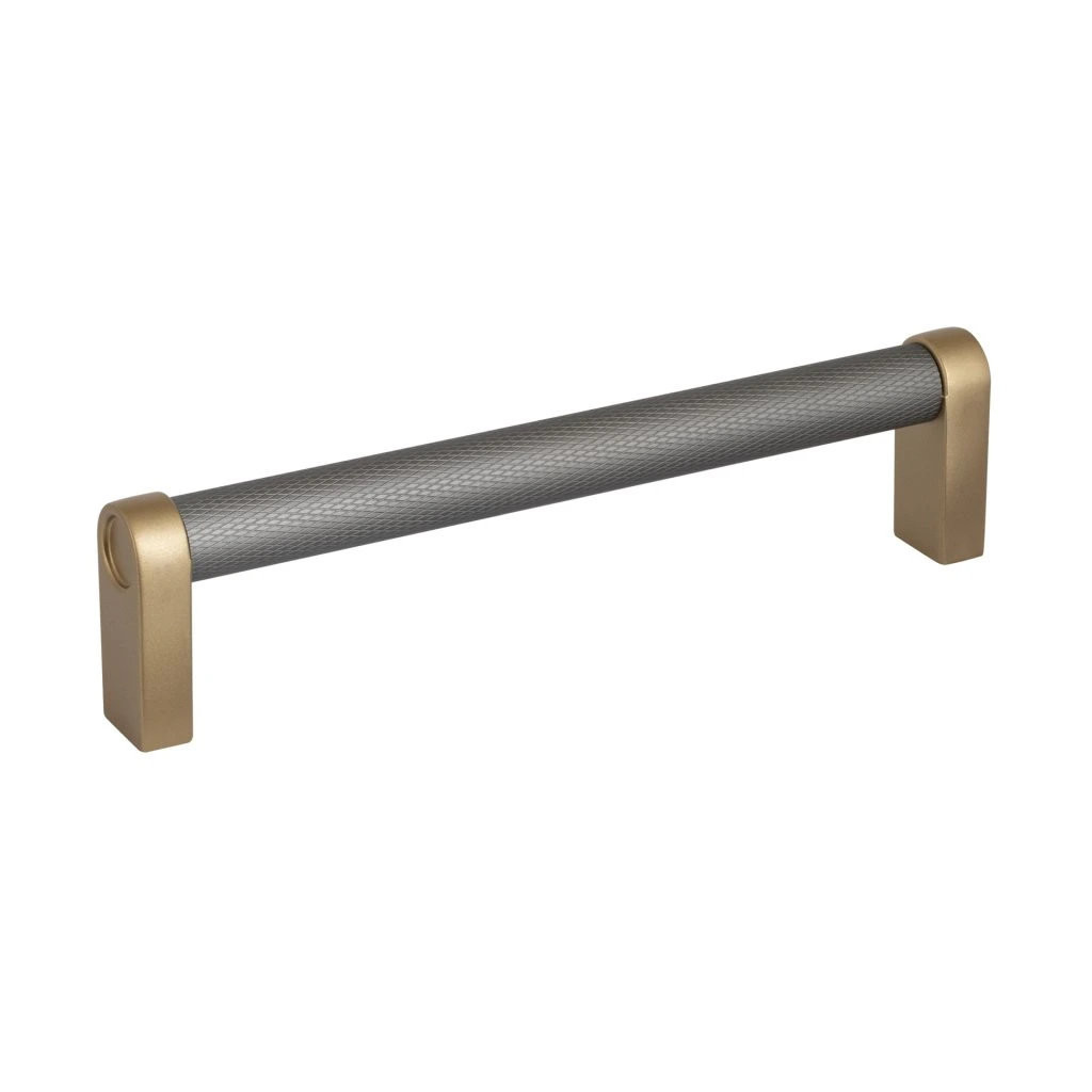 Bútor fogantyú Stirr tengelytávolság 128 mm alumínium szürke/szálcsiszolt sárgaréz