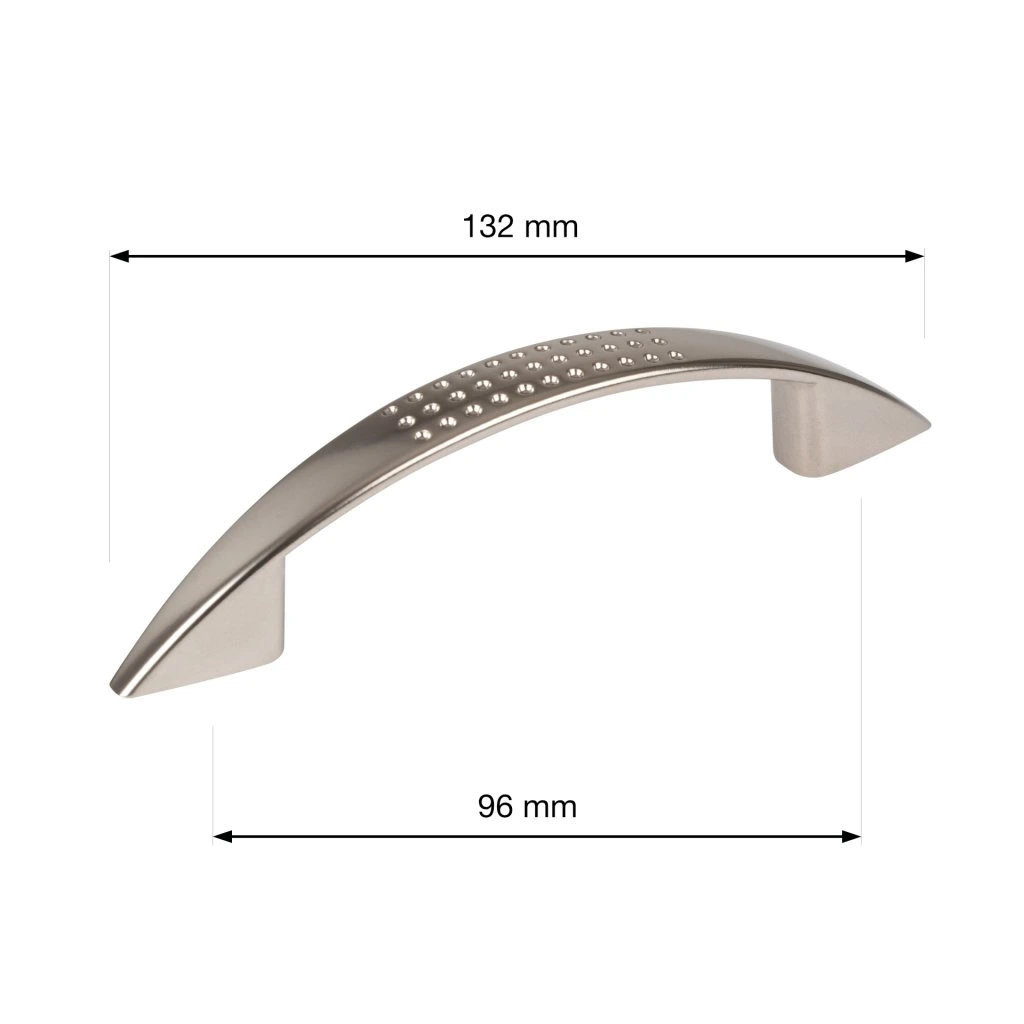 Jamo bútorfogantyú klasszikus dizájnnal, 96 mm-es rasztermérettel és matt nikkel bevonattal. A fogantyú hossza 132 mm, szélessége 15 mm és magassága 28 mm. Rögzítőcsavarokkal együtt.