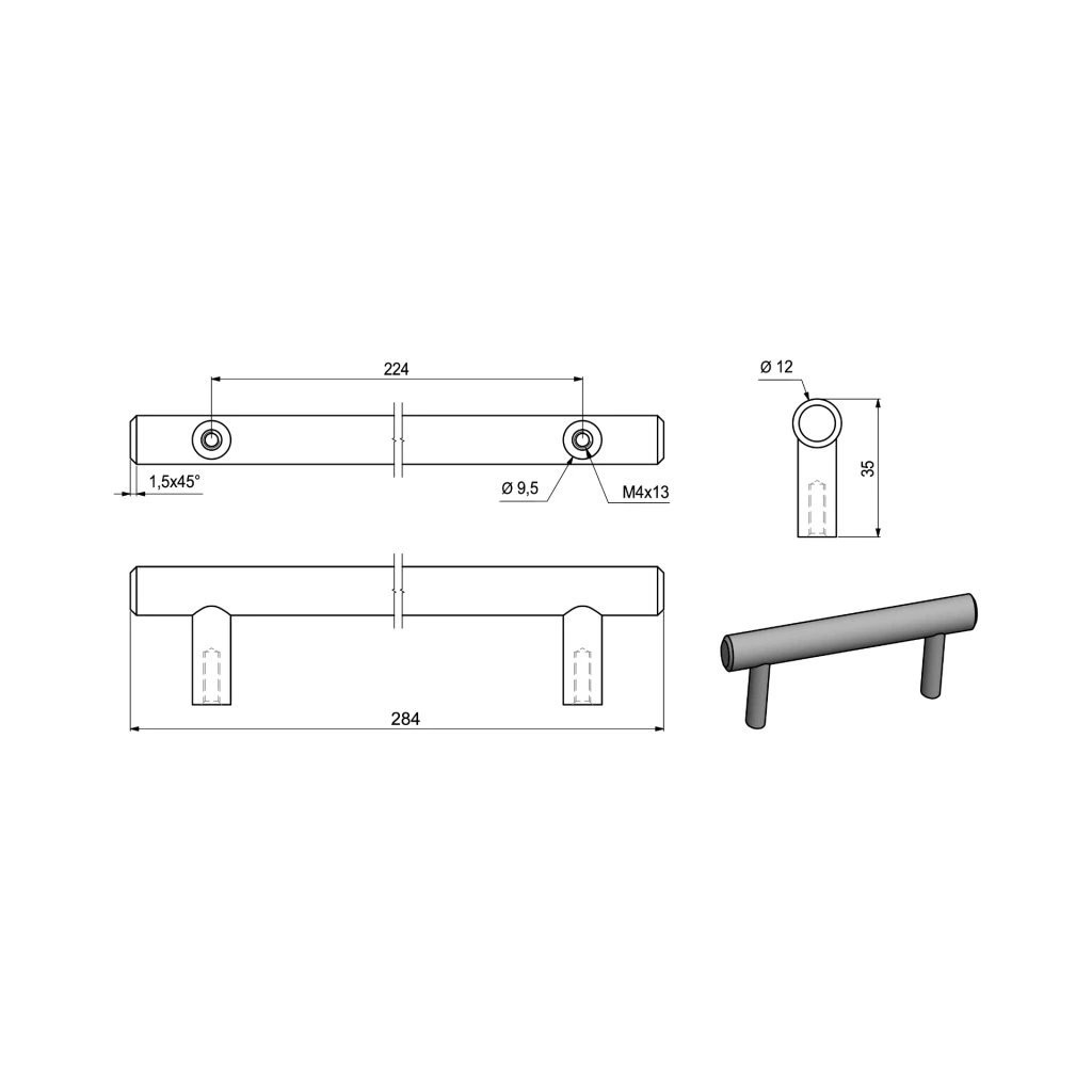 Modern Maxim bútorfogantyú 224 mm-es tengelytávolsággal és szálcsiszolt szatén nikkel felülettel. A fogantyú hossza 284 mm, szélessége 12 mm és magassága 35 mm. Rögzítőcsavarokkal együtt.