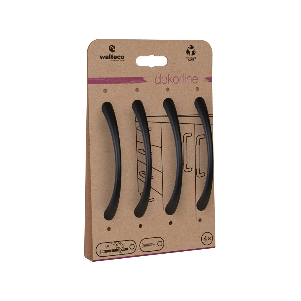 Gitka bútorfogantyú szett modern dizájnban, 96 mm-es rasztertávolsággal, matt fekete színben. Fogantyúhossz 112 mm, szélessége 10,5 mm és magassága 27,5 mm. A csomag 4 db fogantyút és rögzítőcsavarokat tartalmaz.