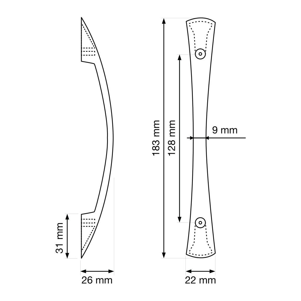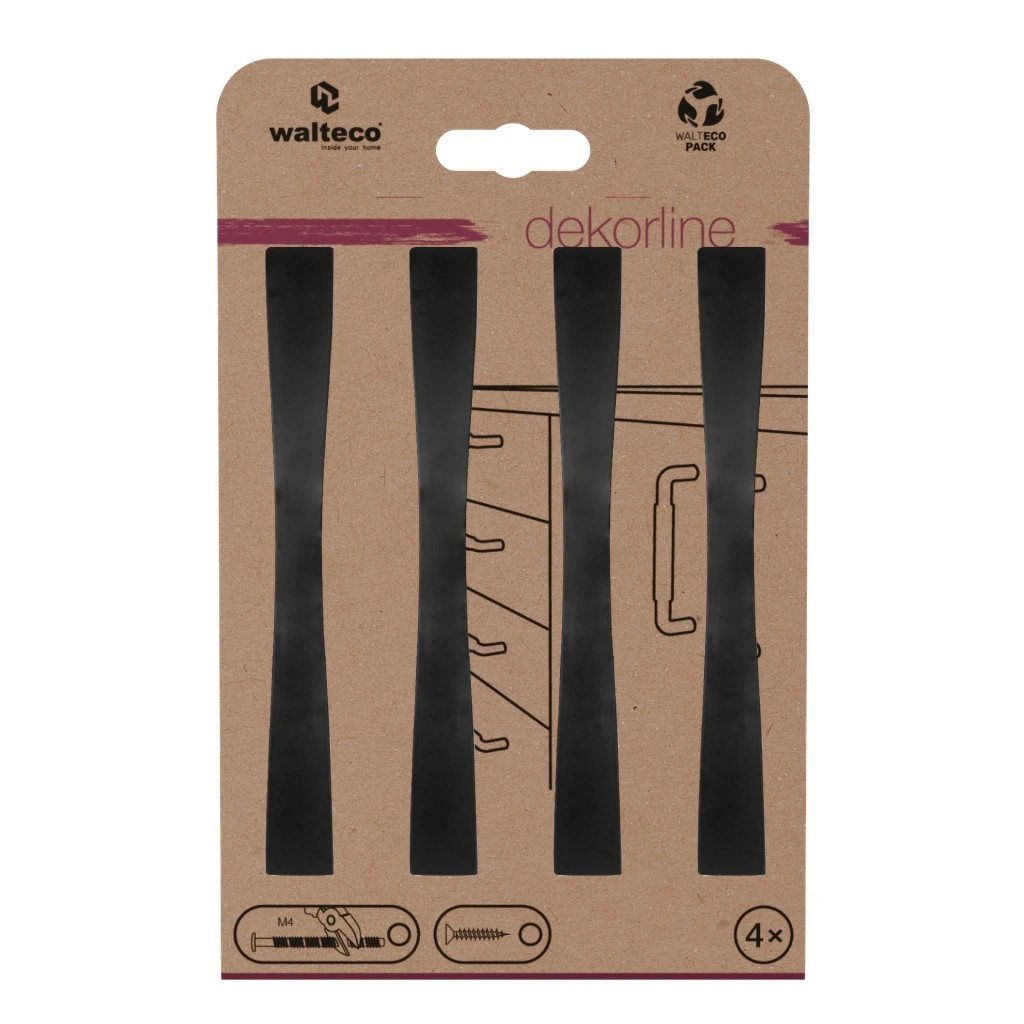 Modern dizájnú Nevada bútorfogantyú-garnitúra, 128 mm-es tengelytávolsággal, matt fekete színben. Fogantyúhossz 183 mm, szélessége 22 mm és magassága 26 mm. A csomag 4 fogantyút és rögzítőcsavarokat tartalmaz.