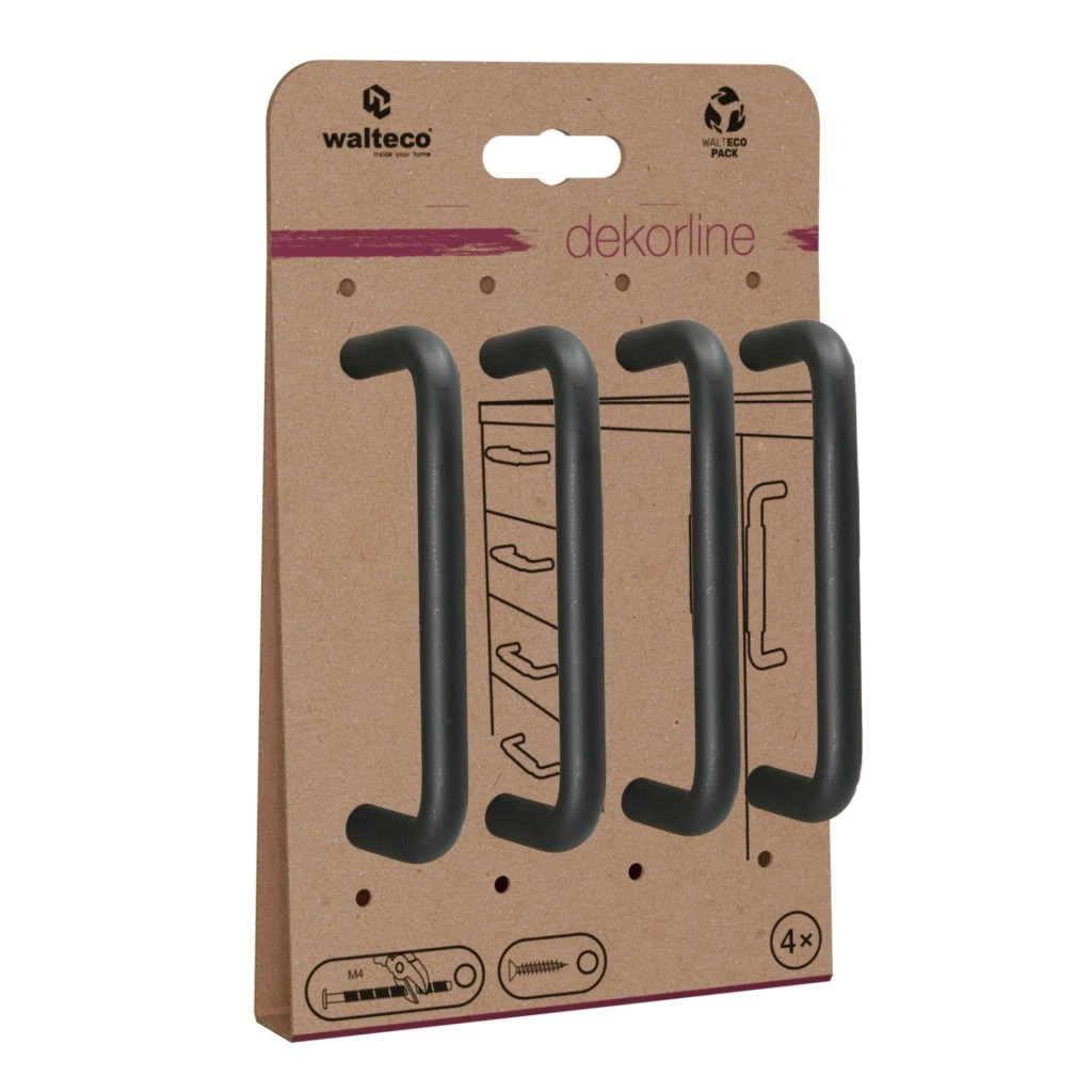 Gissi bútorfogantyú szett modern dizájnban, 96 mm-es rasztermérettel, matt fekete színben. Fogantyúhossz 106 mm, szélesség 10 mm és magasság 32 mm. A csomag 4 db fogantyút és rögzítőcsavarokat tartalmaz.
