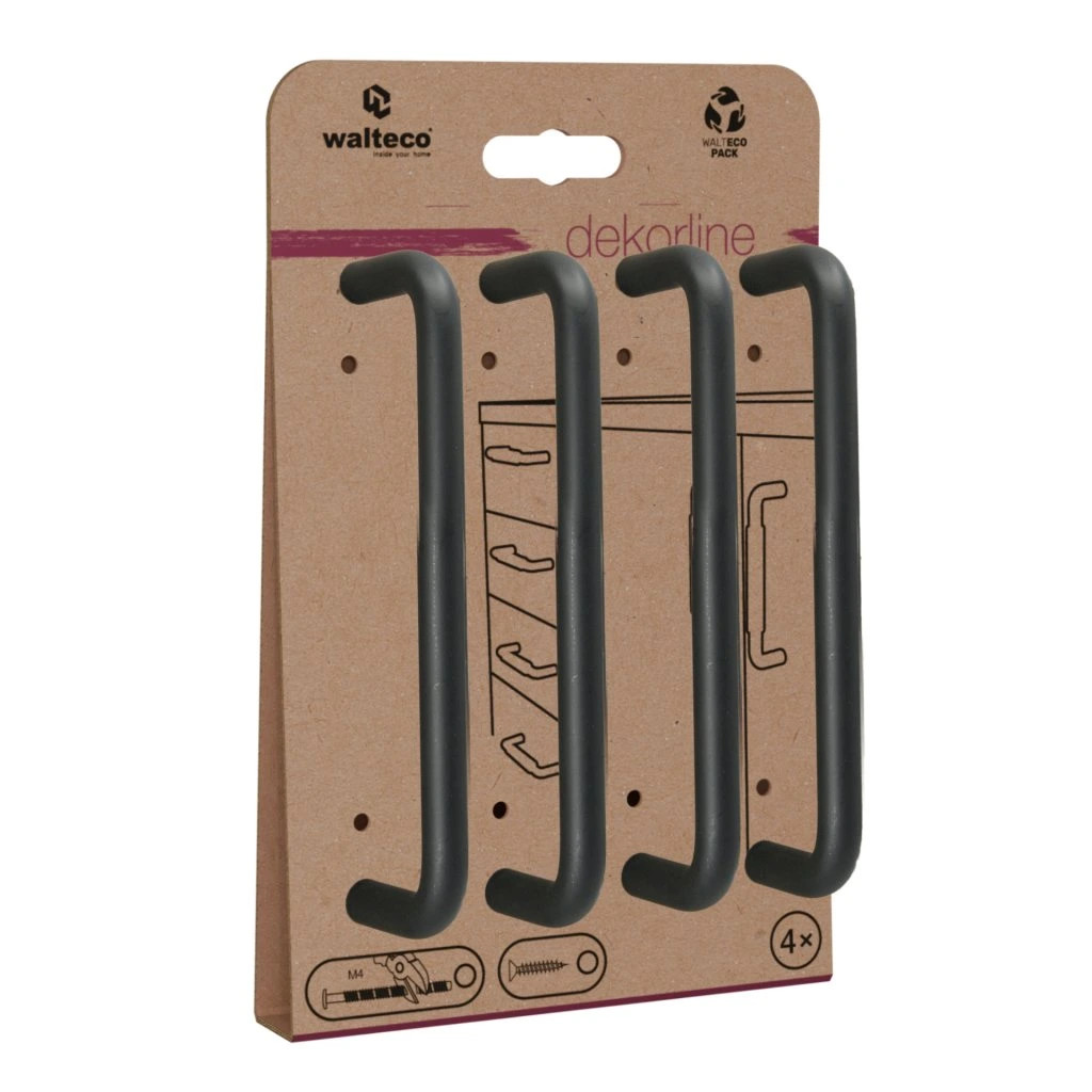 Gissi bútorfogantyú szett modern dizájnban, 128 mm-es tengelytávolsággal, matt fekete színben. Fogantyúhossz 138 mm, szélessége 10 mm és magassága 32 mm. A csomag 4 db fogantyút és rögzítőcsavarokat tartalmaz.