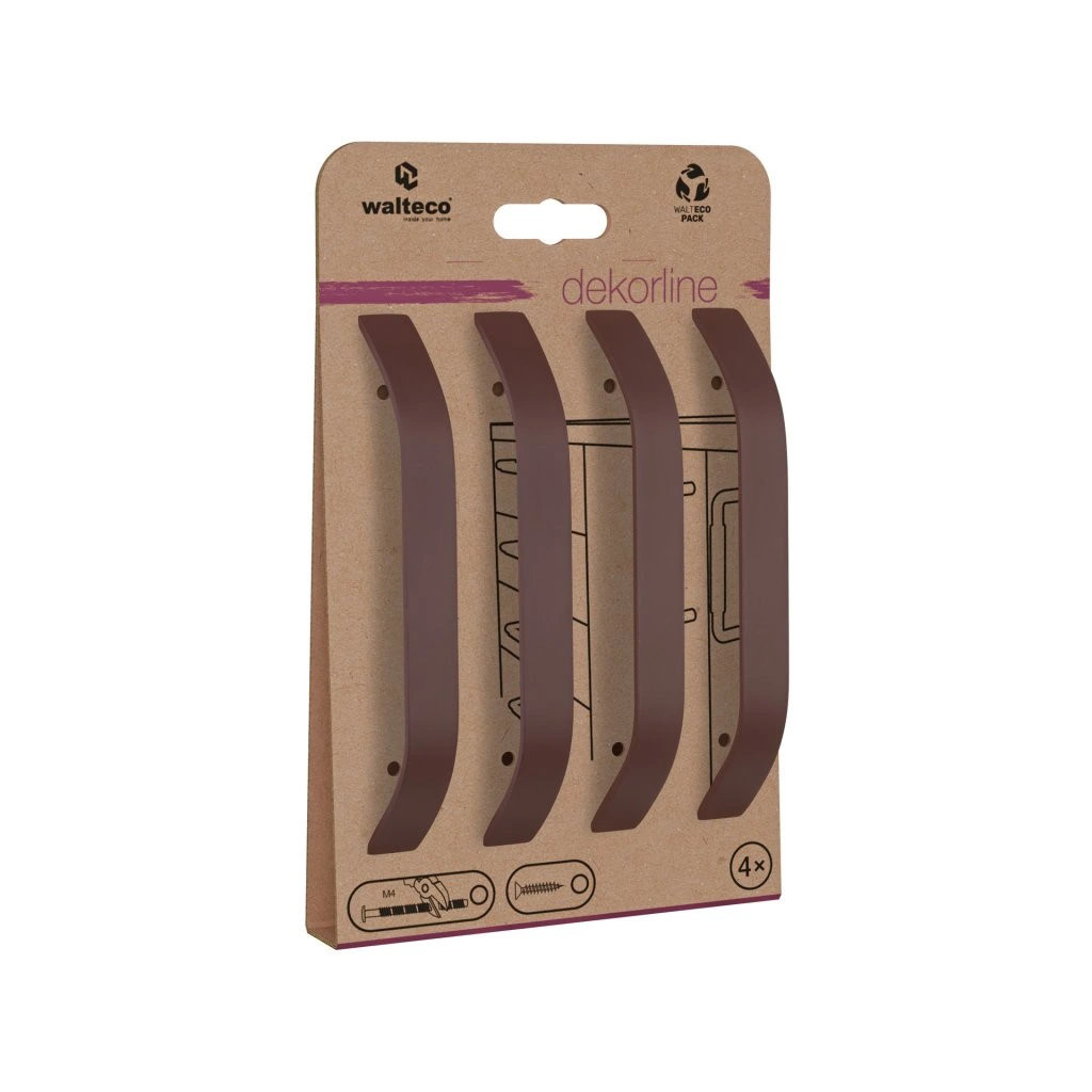 Lugano bútorfogantyú szett modern dizájnban, 128 mm-es tengelytávolsággal, matt bordó színben. Fogantyúhossz 144 mm, szélessége 15 mm és magassága 28 mm. A csomag 4 db fogantyút és rögzítőcsavarokat tartalmaz.