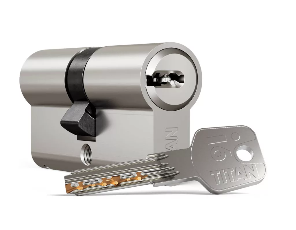 Titan I6 Biztonsági kuplungos és Törésvédett Hengerzárbetét 40/60 Szatén Króm Felület (5 Kulcs)