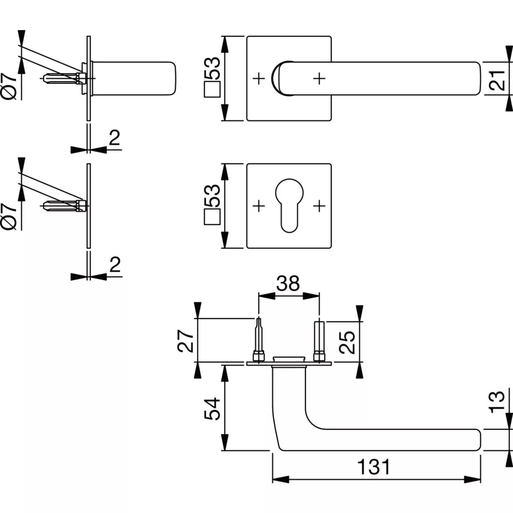 HOPPE DALLAS rozettás kilincsgarnitúra szögletes nemesacél matt PZ