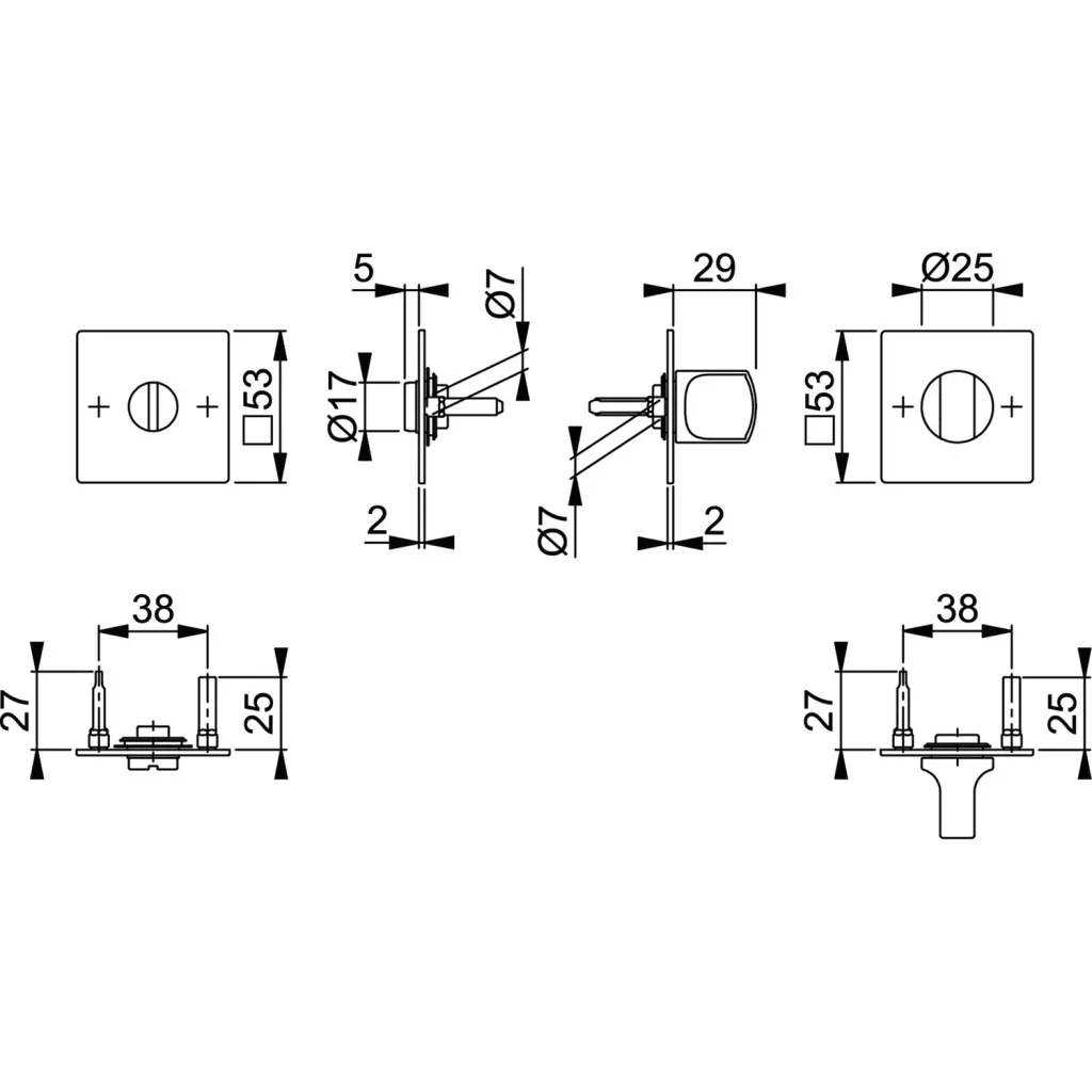 HOPPE DALLAS rozettás kilincsgarnitúra szögletes világos réz WC