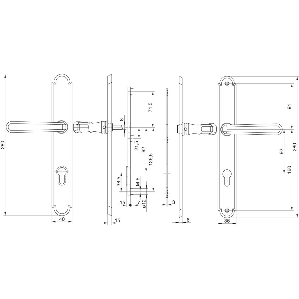 Grundmann biztonsági kilincsgarnitúra ALT-WIEN PZ 92 réz krómozott
