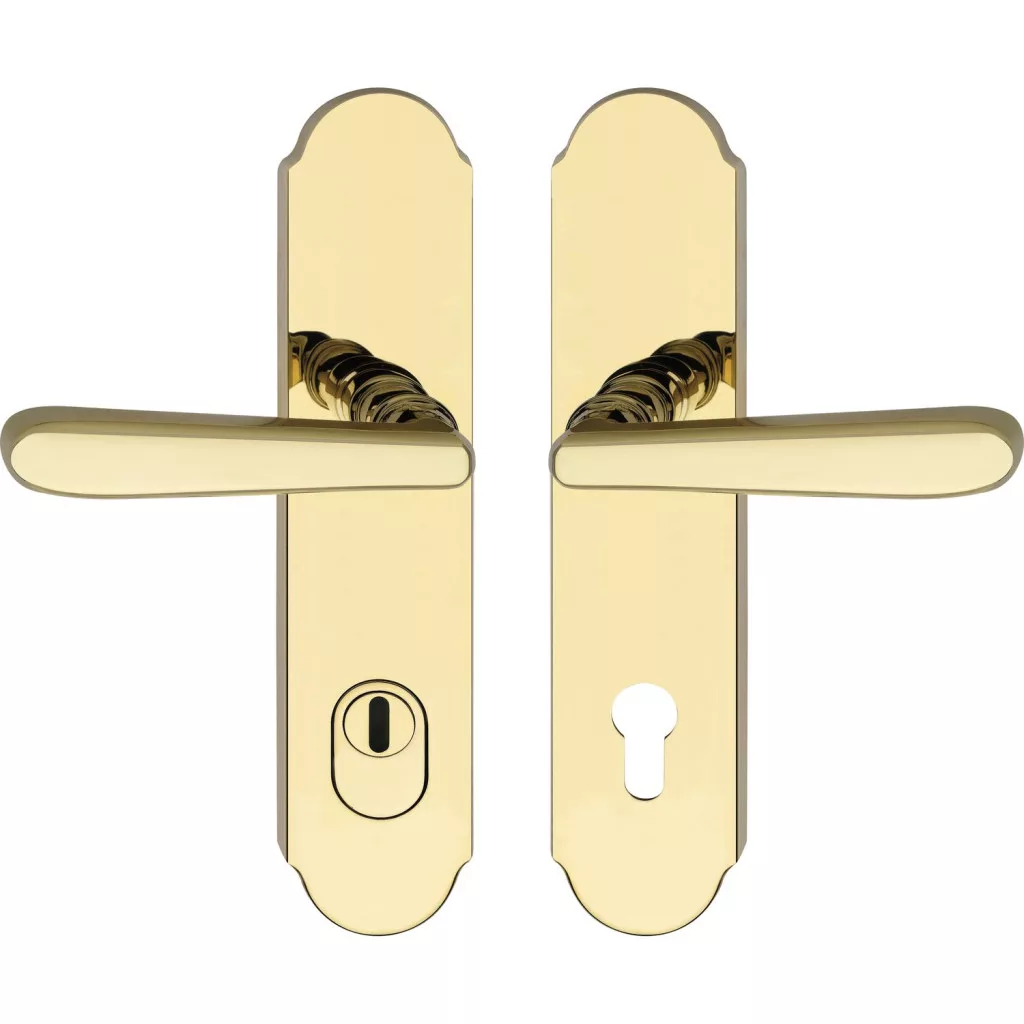Marchesi Biztonsági kilincsgarnitúra ALT-WIEN pajzsos PZ 88 cilinder védelemmel RC3 PVD-sárgarézszín