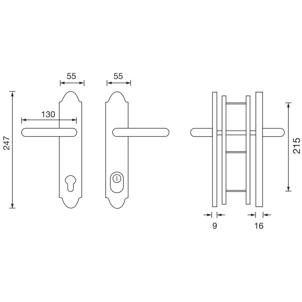 Kivitel: kilincs és hosszúpajzs külön, (cilinder kinyúlás 13-16)