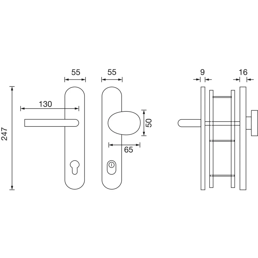 Kivitel: Kilincs és hosszúpajzs külön, toldás 16 mm, (cilinder kinyúlás 13-16)