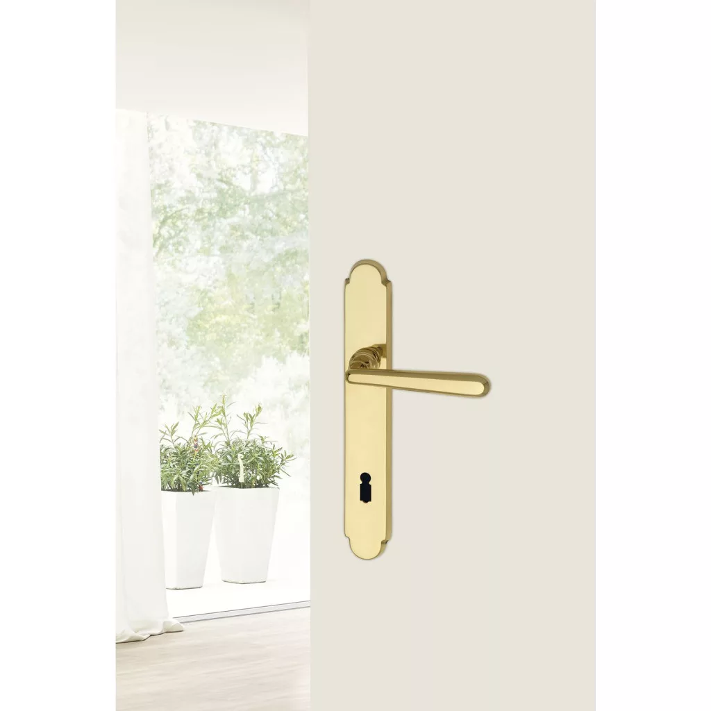 Marchesi hosszúpajzsos kilincsgarnitúra Alt-Wien BB 90 mm zártakaró n. polírozott réz