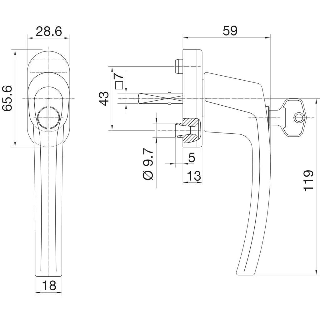 Rozetta (mm): 28,6 x 65,6 x 13