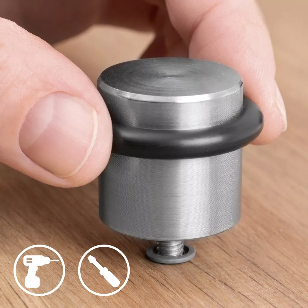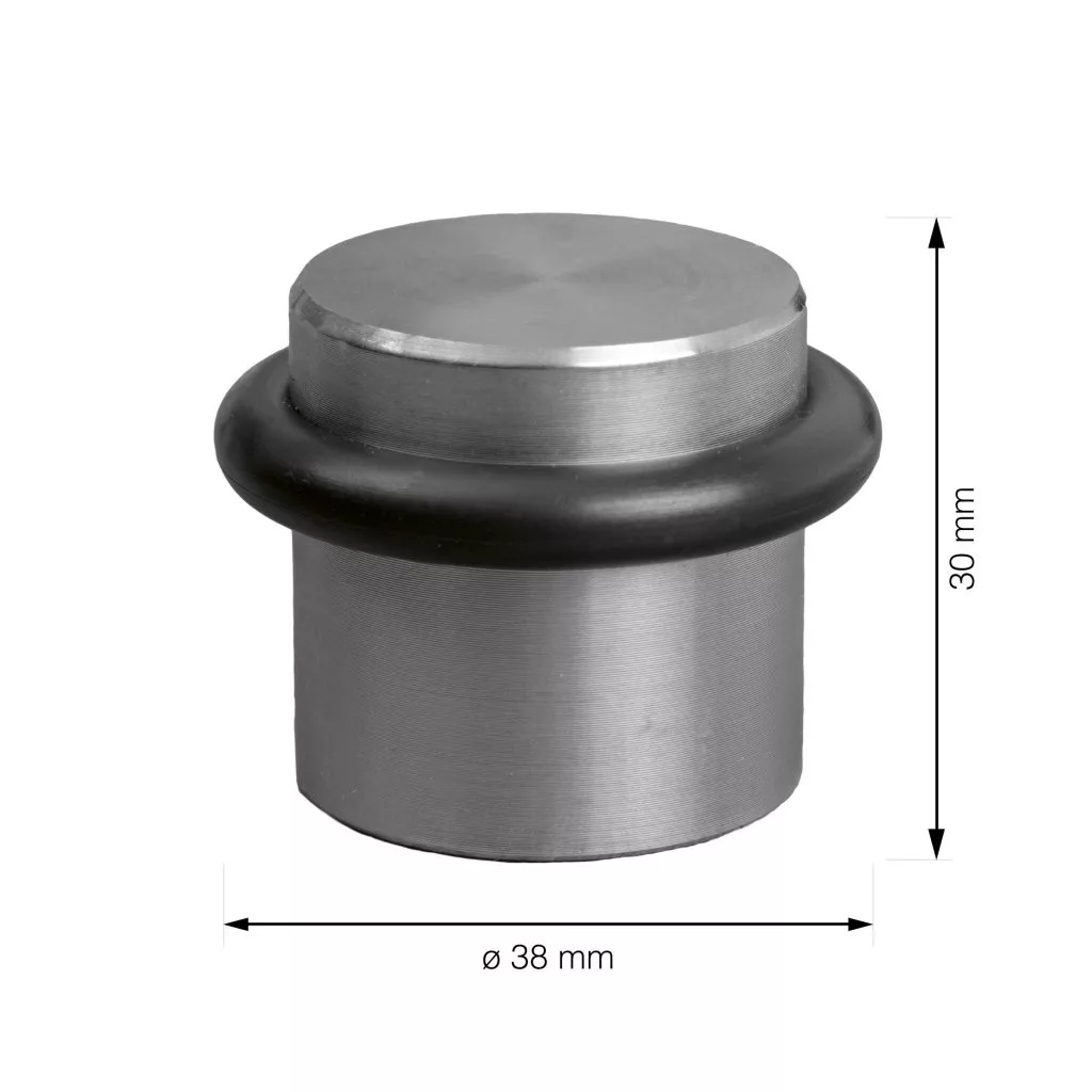 33 mm átmérőjű és 25 mm magas rozsdamentes acél ajtóütköző (gumihüvellyel együtt). Védi a falakat és