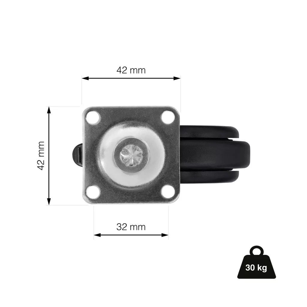 Design bútorkerék 60 mm átmérőjű forgó talppal fékkel teherbírás 30 kg fekete