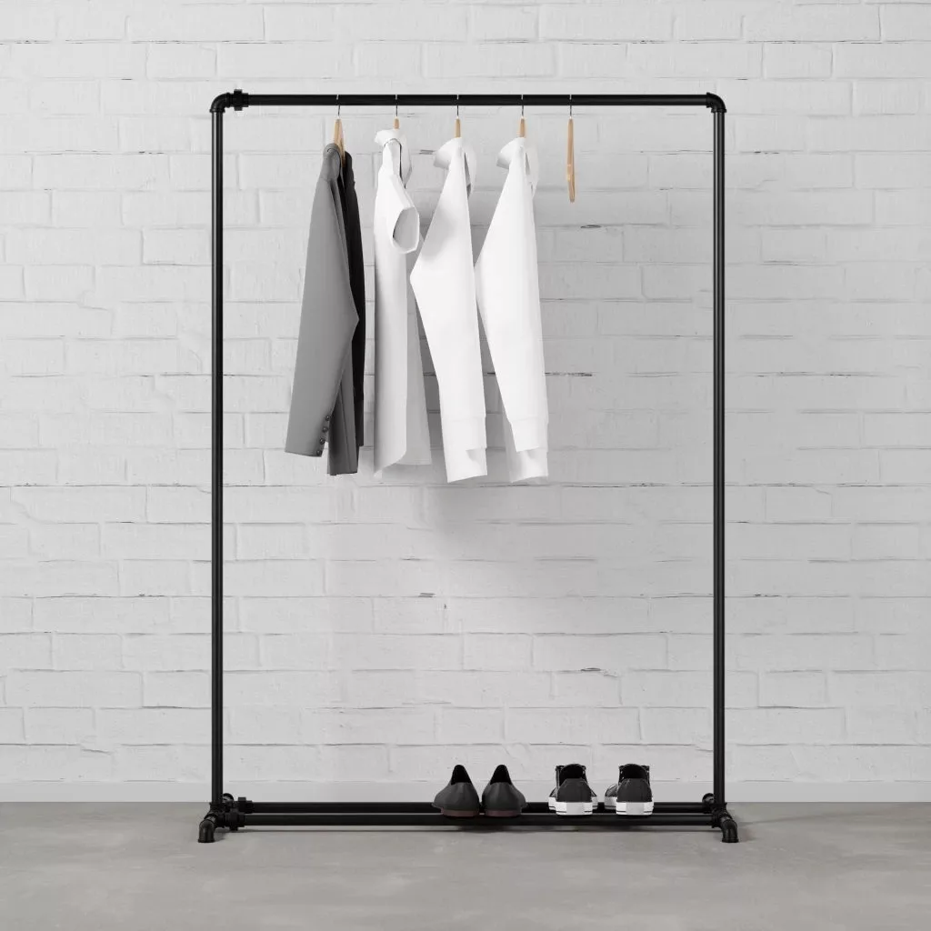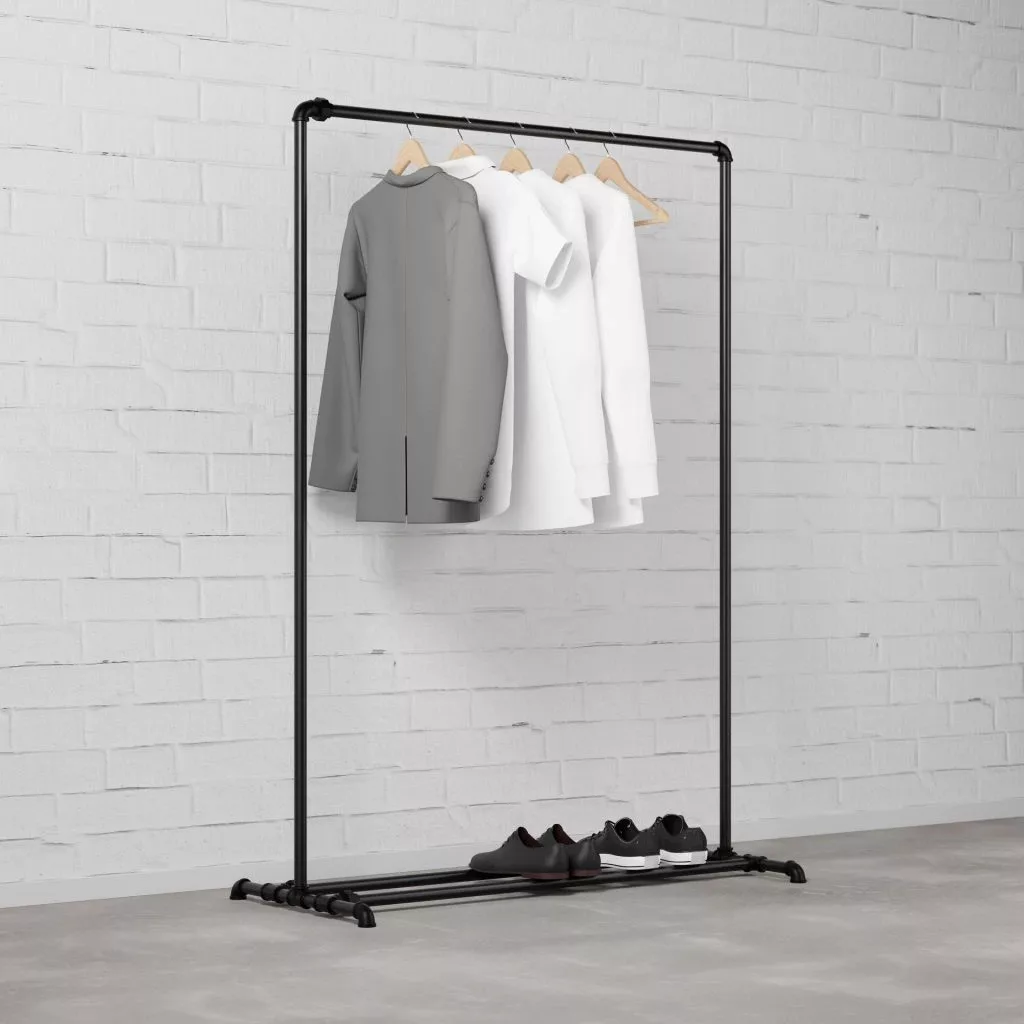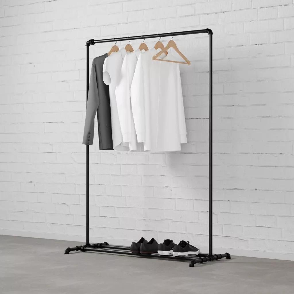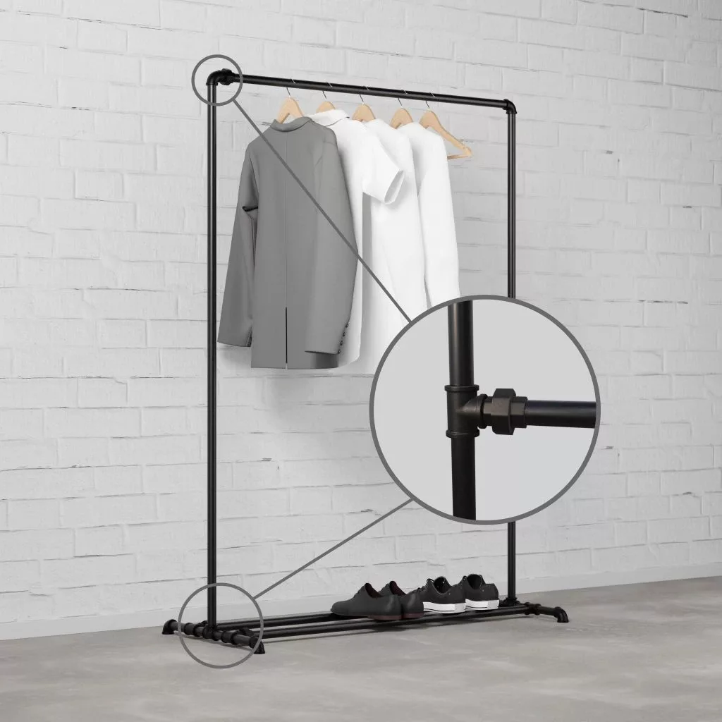 Vintage dizájn: Ez az ipari stílusú ruhaállvány különleges megjelenést kölcsönöz ruhatárának. Tökéletesen kiegészíti a többi Rusticline szettet és dizájnelemet.