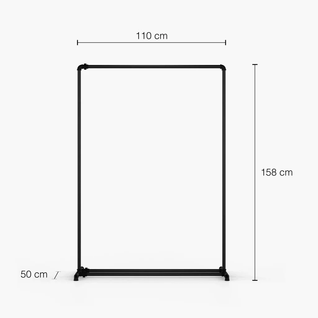 A Rusticline csőrendszerből készült, 1580 mm magas FREJA I ruhaállvány különlegessé teszi öltözőjét, előszobáját, hálószobáját vagy ruhatárát. Variálhatóságának köszönhetően bármilyen térbe illeszkedik, mivel az állványt bárhová áthelyezheti, ahol szüksége van rá. Az állvány alján rudak találhatók cipők/dobozok/egyéb kiegészítők tárolására.