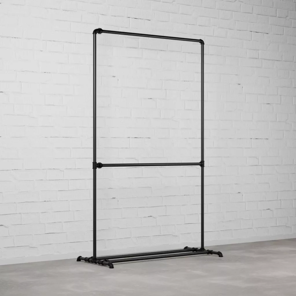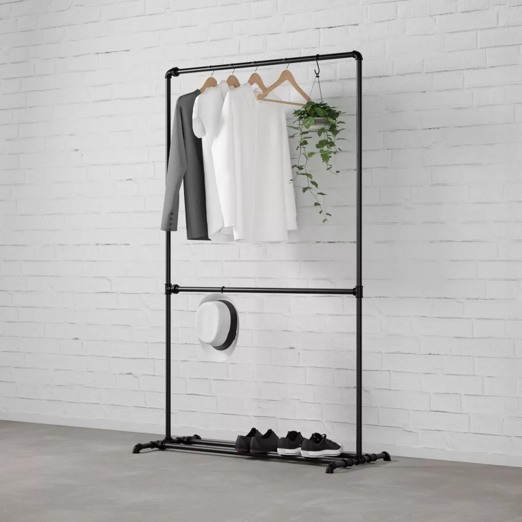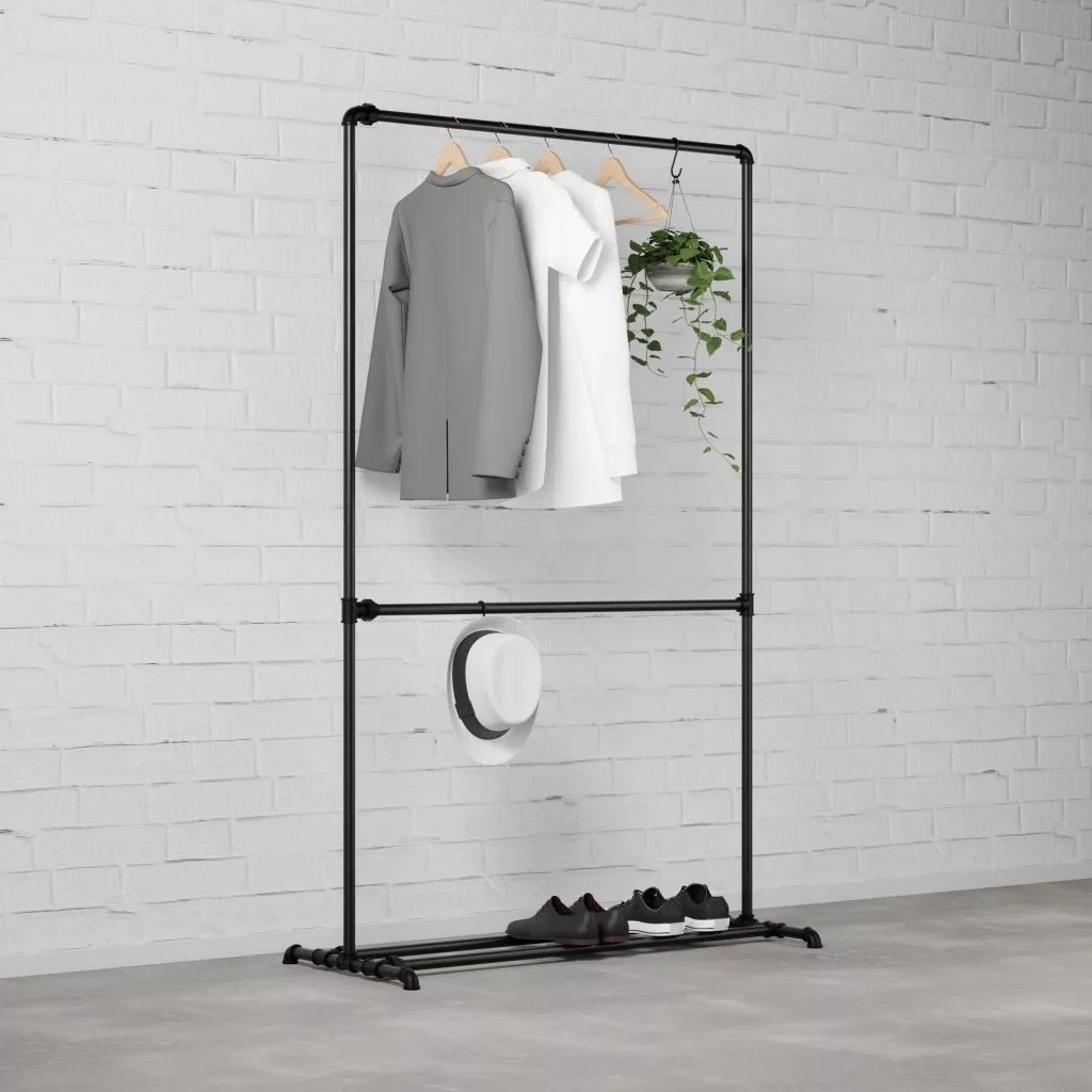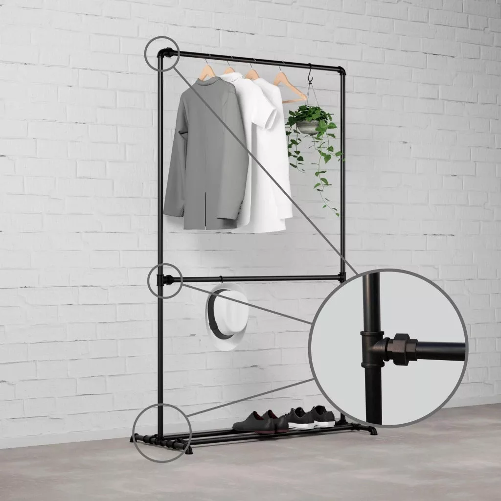 Vintage dizájn: Ez az ipari stílusú ruhaállvány különleges megjelenést kölcsönöz ruhatárának. Tökéletesen kiegészíti a többi Rusticline szettet és dizájnelemet.