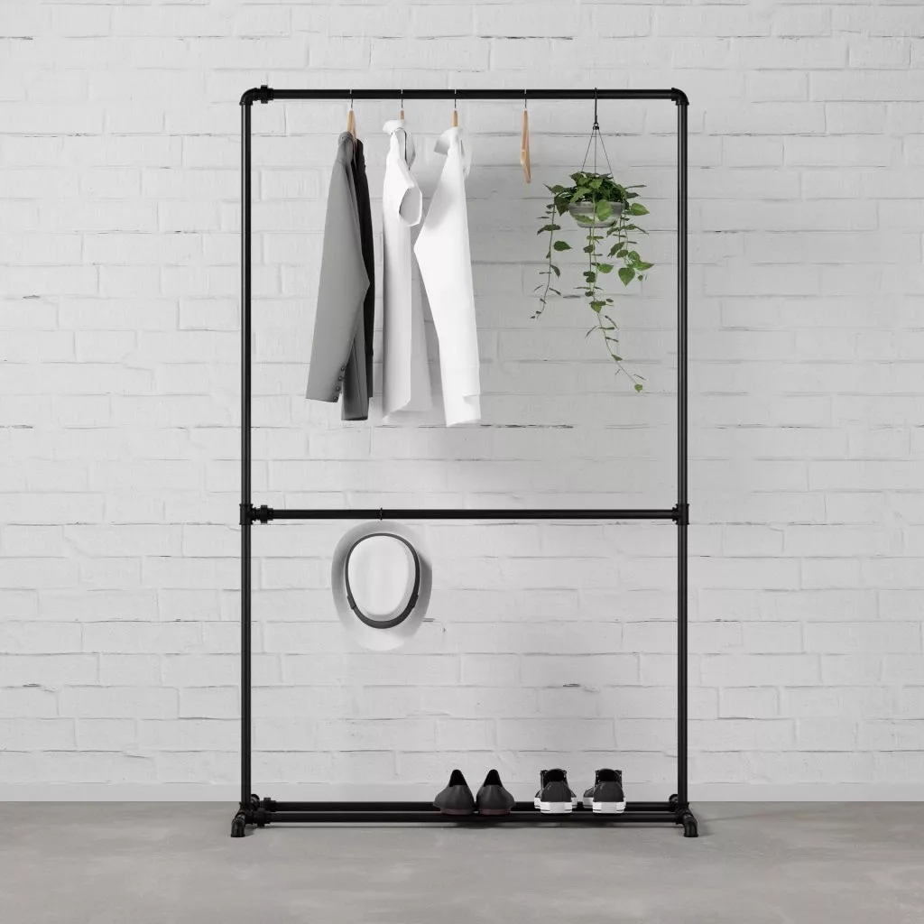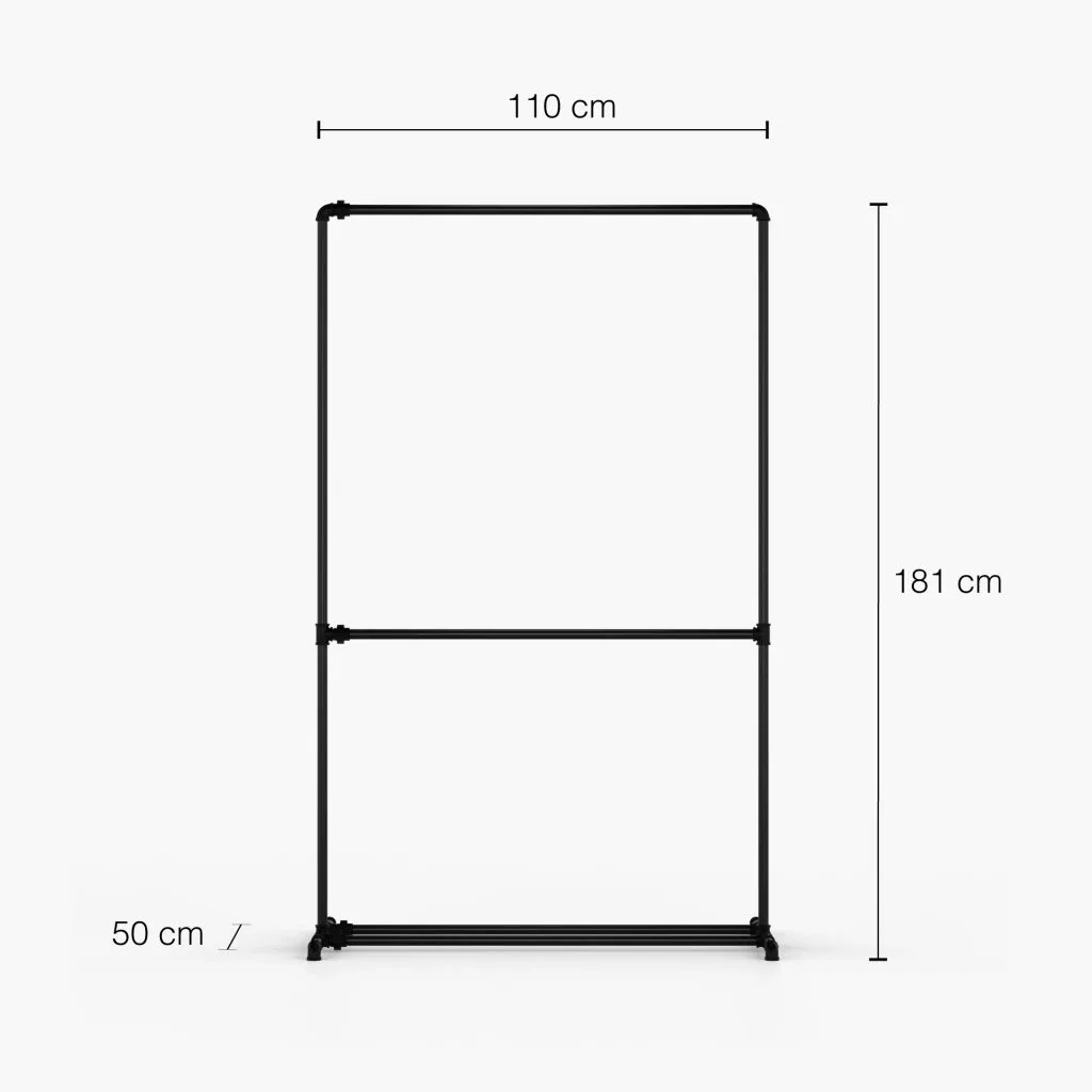 A Rusticline csőrendszerből készült, 1810 mm magas FREJA I ruhaállvány különlegessé teszi öltözőjét, előszobáját, hálószobáját vagy ruhatárát. Variálhatóságának köszönhetően bármilyen térbe illeszkedik, mivel az állványt bárhová áthelyezheti, ahol szüksége van rá. Az állvány alján rudak találhatók cipők/dobozok/egyéb kiegészítők tárolására.