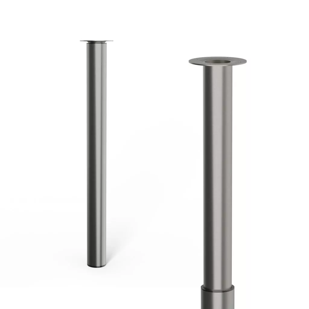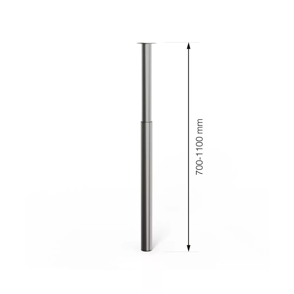 Magasságban állítható kerek bútorláb szálcsiszolt nikkel felülettel, 60/50 mm átmérővel és 80 kg teherbírással. A bútorláb alapmagassága 700 mm, felfelé csavarozva 1100 mm-ig állítható.