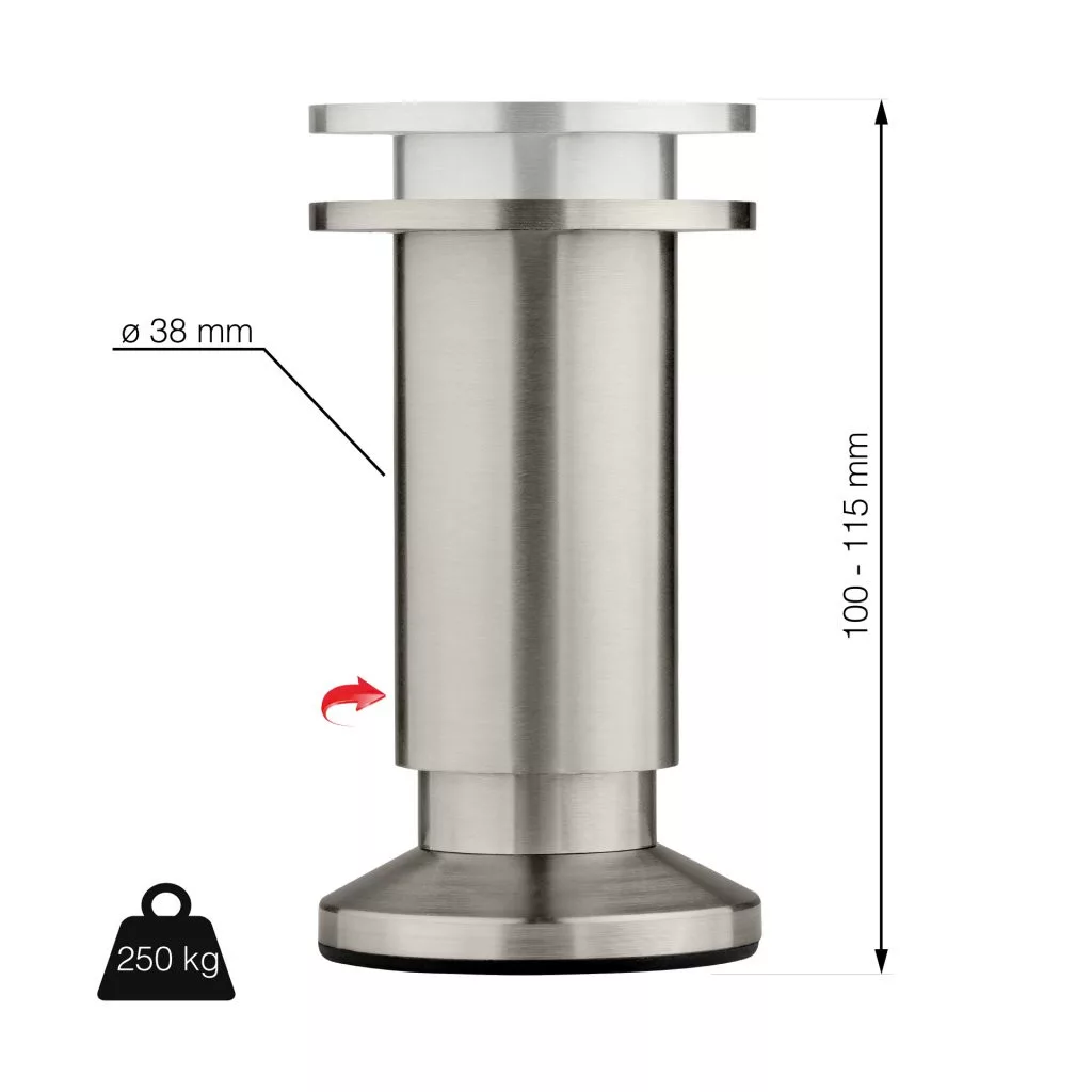 Bútorláb átmérője 38 mm magassága 100-115 mm között állítható 250 kg szálcsiszolt nikkel