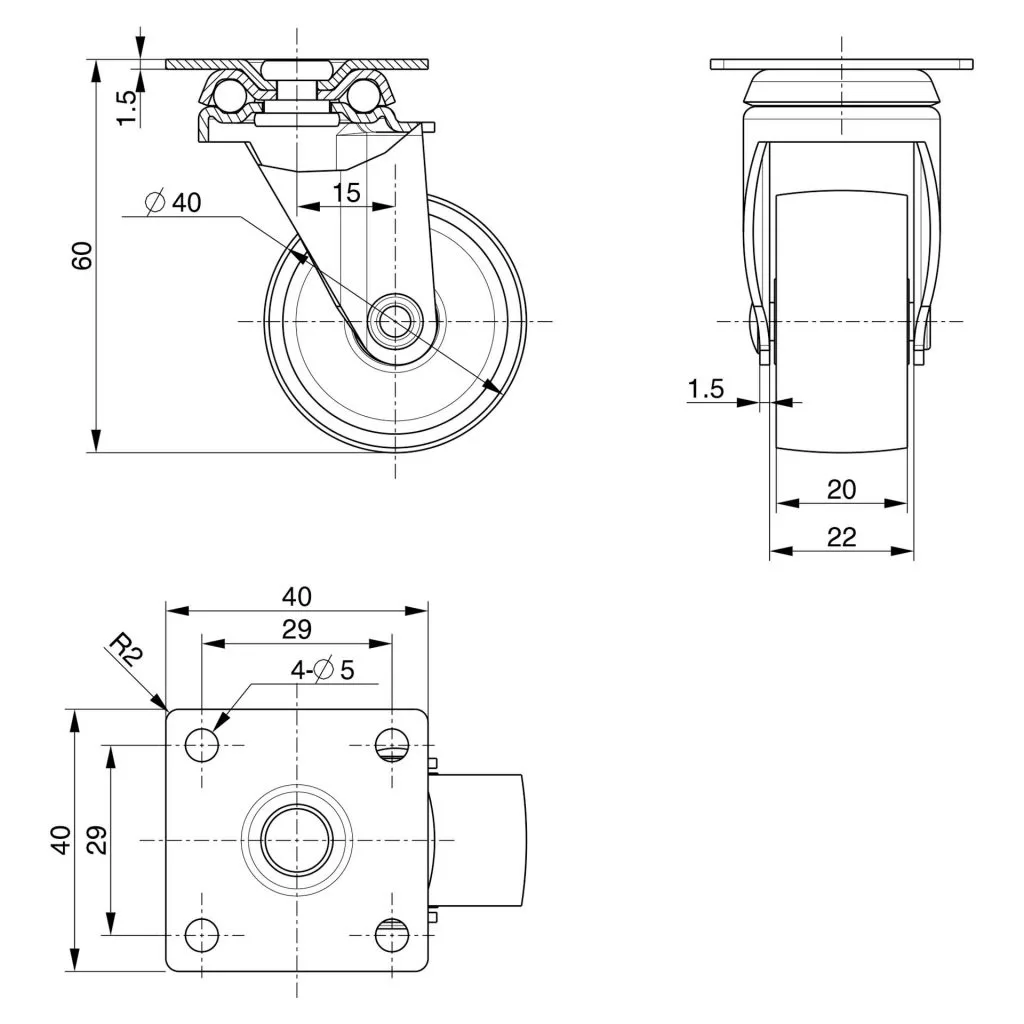 Készülékkerék kemény padlóhoz átmérő 40 mm teherbírás 25 kg