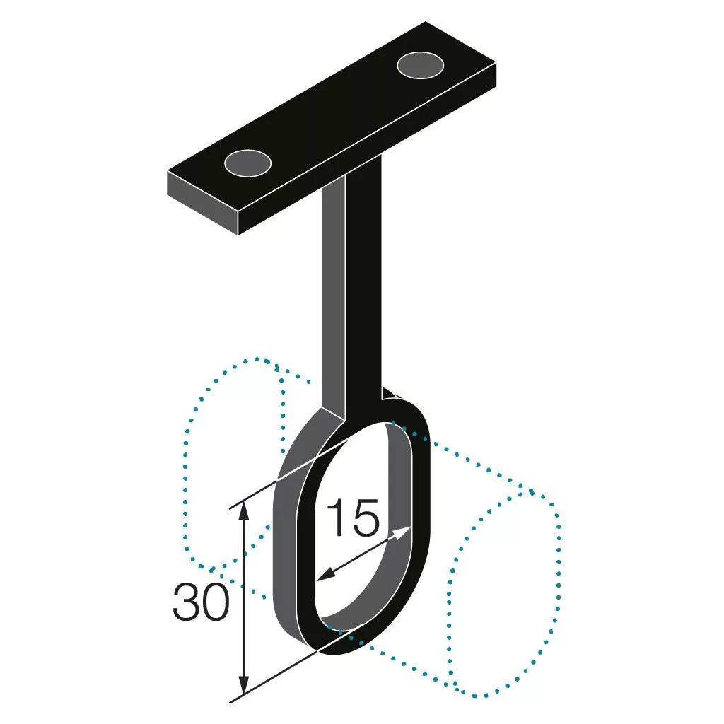 Ovális ruhaakasztó rúdtartó 30x15mm felső rögzítéssel végigfutó fekete
